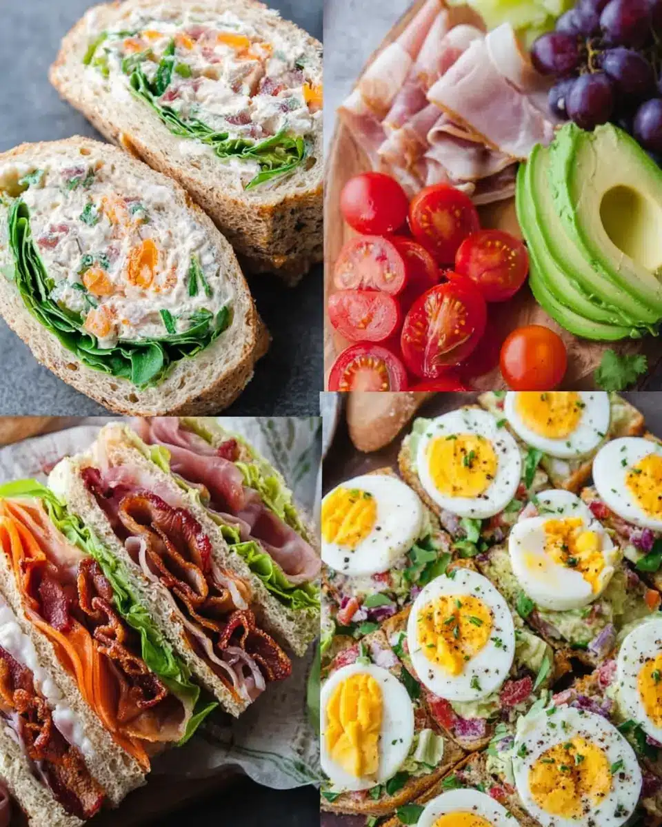 - Proteins: Chicken ham, turkey bacon, canned tuna, boiled eggs, or a plant-based protein like hummus.
