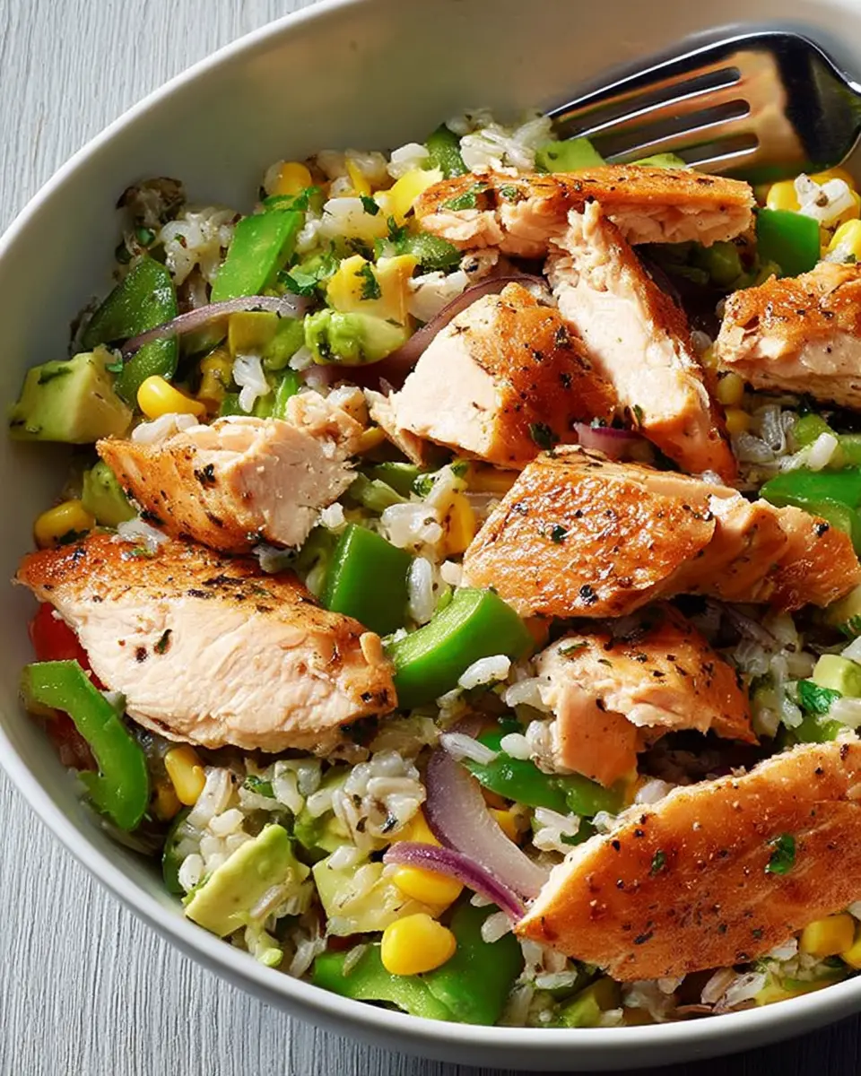 Finally, once your rice is ready, gently fold it into the skillet with the vegetables and chicken. It’s all about balance, so sprinkle some salt and pepper to taste. Give everything a good mix to ensure even distribution of flavors. Voila! Your low-calorie chicken and rice bowl is ready to serve.