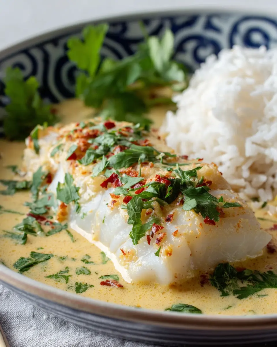 Once the cod is ready, don’t be afraid to get a little creative with your presentation! Top the fish with chopped fresh cilantro for a burst of color and an added layer of flavor. This baked coconut curry cod recipe can be served alongside steamed rice or a fresh green salad, creating a well-rounded meal that’s quick to prepare and delightful to share. So gather your loved ones, and enjoy this beautiful blend of flavors!