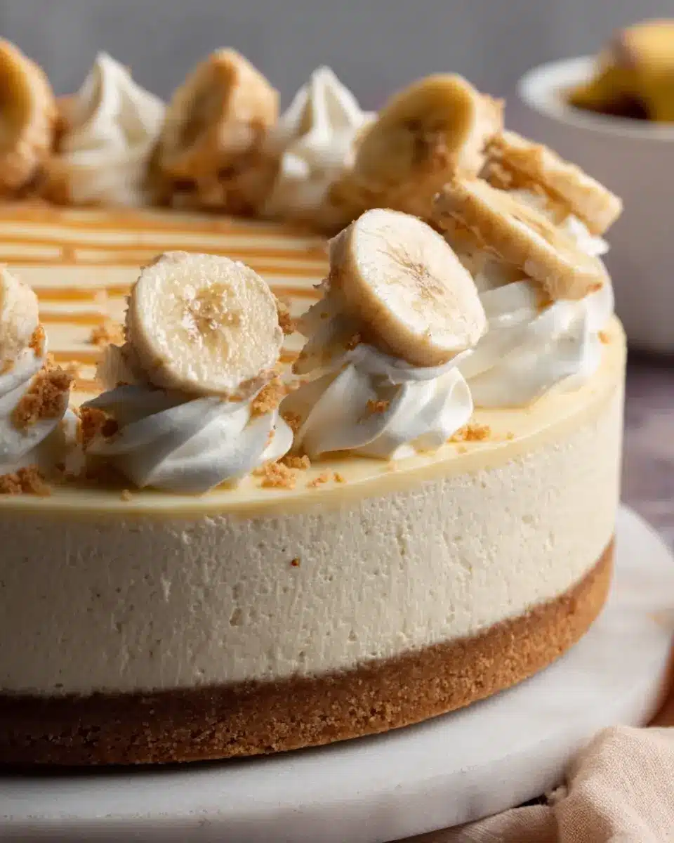 Presentation can elevate your Banana Pudding Cheesecake from simple to spectacular! Consider serving it in individual glass jars for a personal touch or swipe the plate with a drizzle of caramel or chocolate sauce. Dusting the top with a sprinkle of crushed Nilla wafers or adding fresh banana slices can also enhance the visual appeal. For a fancy flair, add edible flowers or mint leaves as a garnish.
