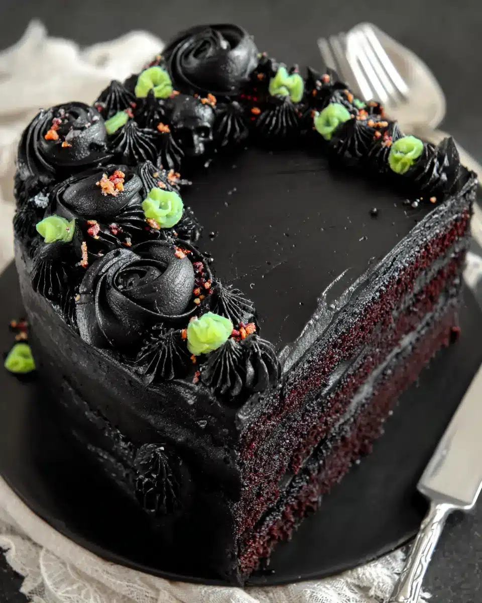 This cake isn't just about looks; it delivers on taste as well. The combination of buttermilk and a touch of instant coffee in the batter adds depth, while the velvety black buttercream frosting elevates it to show-stopping status. Perfect for Halloween or any spirited celebration, this cake transforms any gathering into a special event.