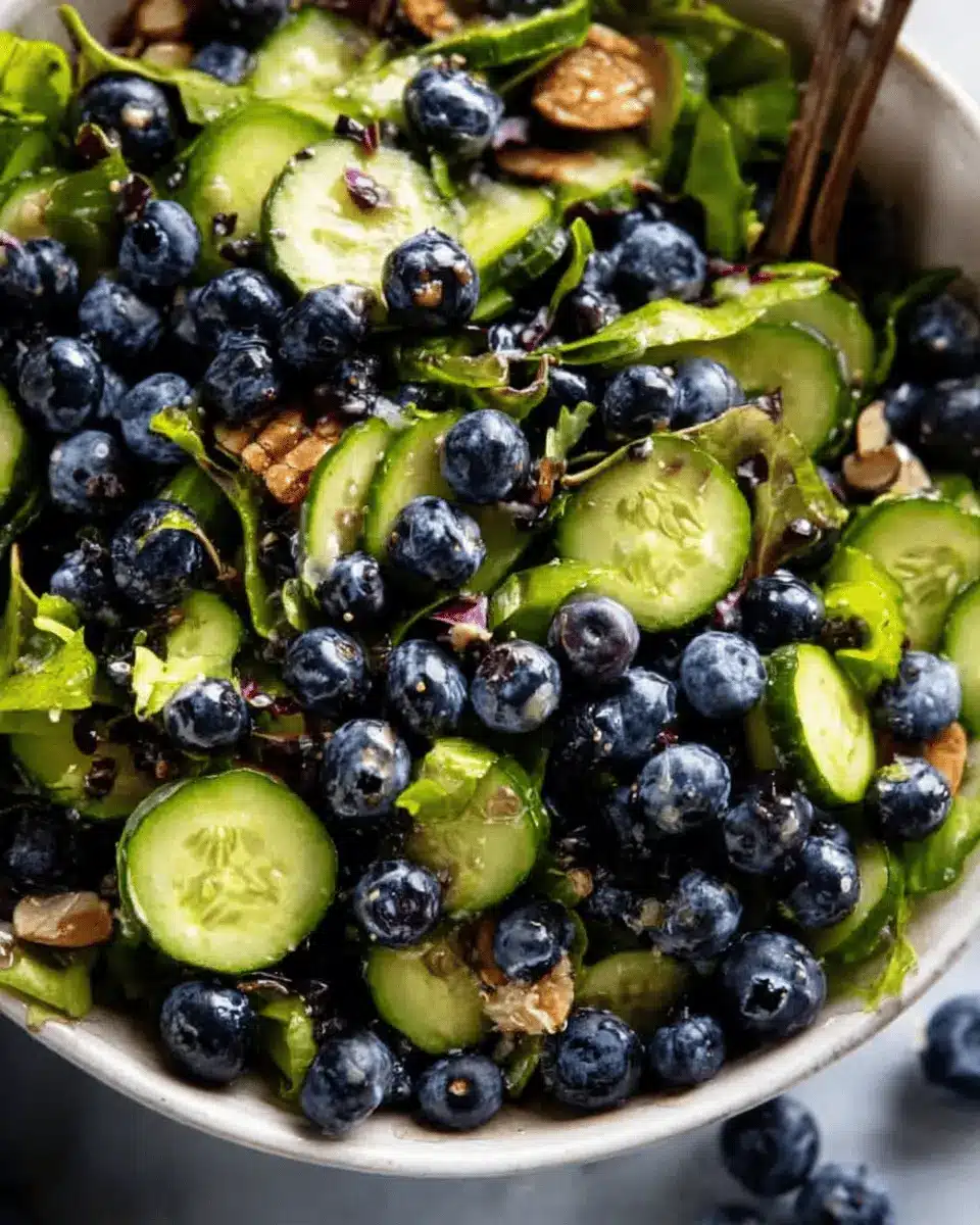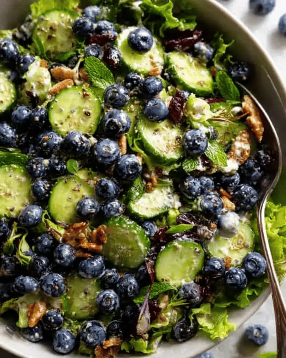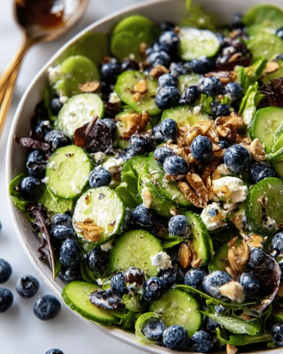 Blueberry Cucumber Summer Salad with Creamy Balsamic Vinaigrette.