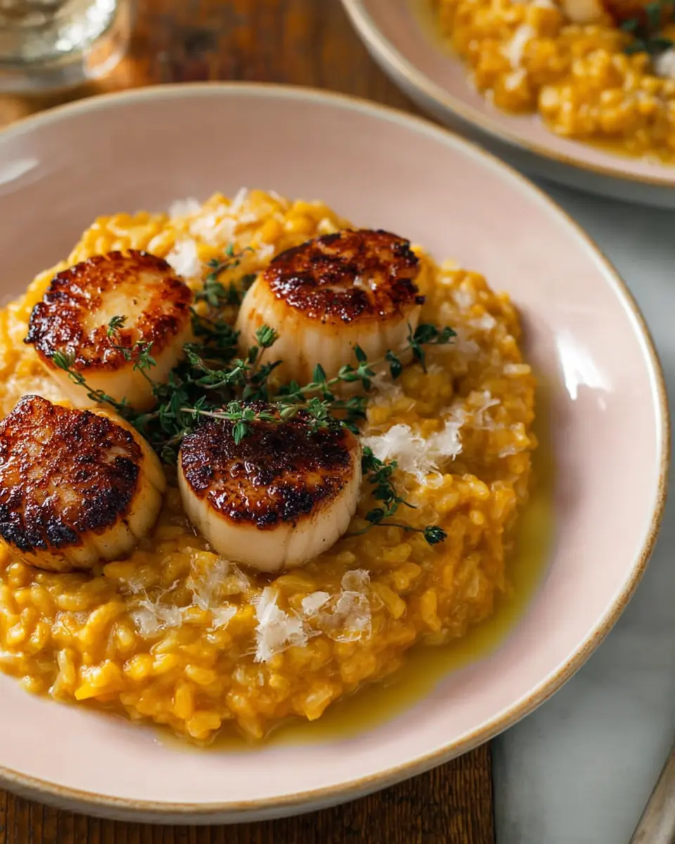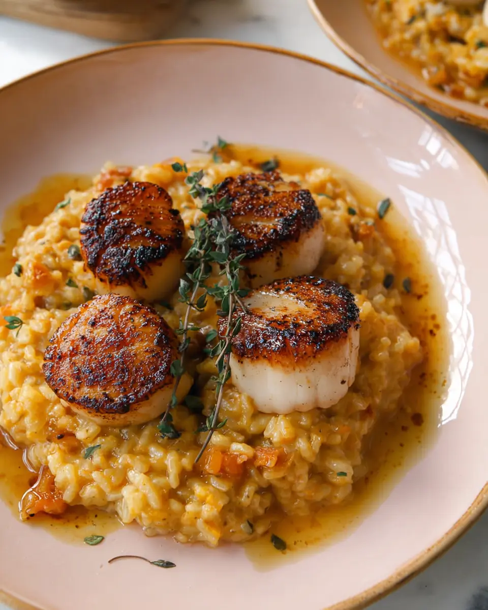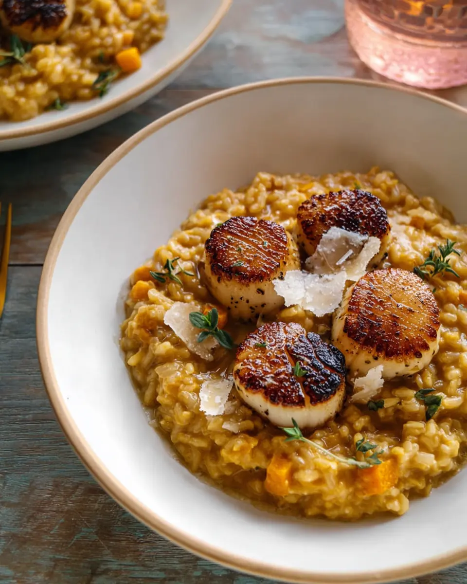 The combination of textures—crispy on the outside, tender and juicy on the inside—paired with the creamy butternut squash risotto makes each bite a comforting yet sophisticated experience. Did you know that scallops are not only delicious but also packed with protein, essential omega-3 fatty acids, and key vitamins?