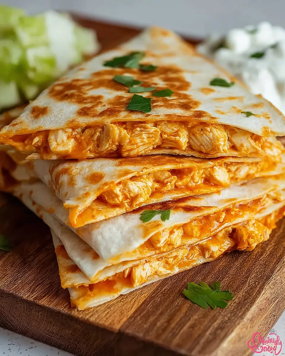 After removing the quesadilla from the skillet, let it rest for about a minute—this will help the cheesy goodness set up a bit. Once rested, slice it into wedges, and voilà! You’re ready to serve your Buffalo Chicken Quesadilla! Pair it with ranch dressing or guacamole for dipping, and you’ve got a dish that’s bound to please any crowd.