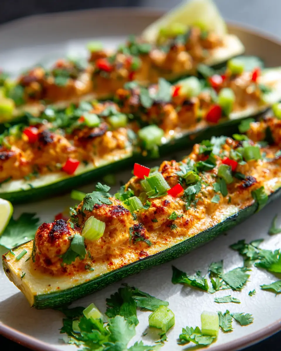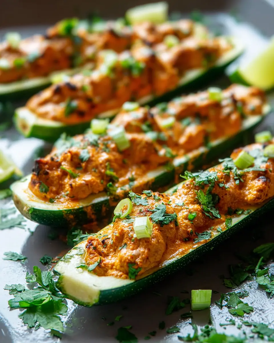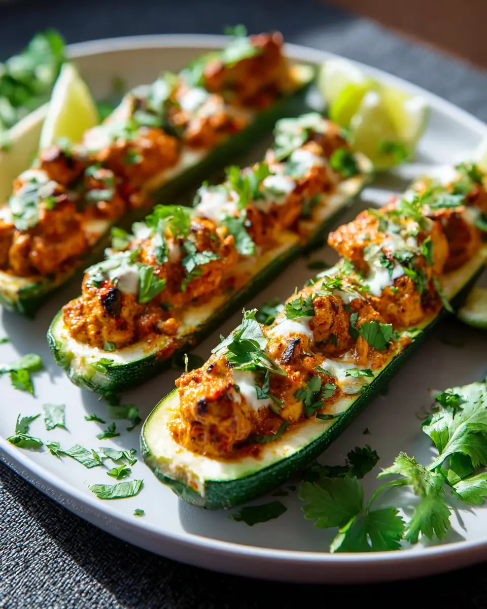 Butter Chicken Stuffed Zucchini Boats with Fresh Herbs Recipe
