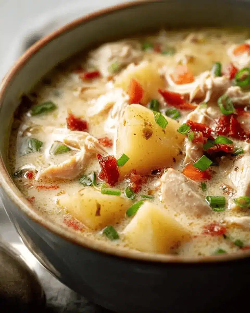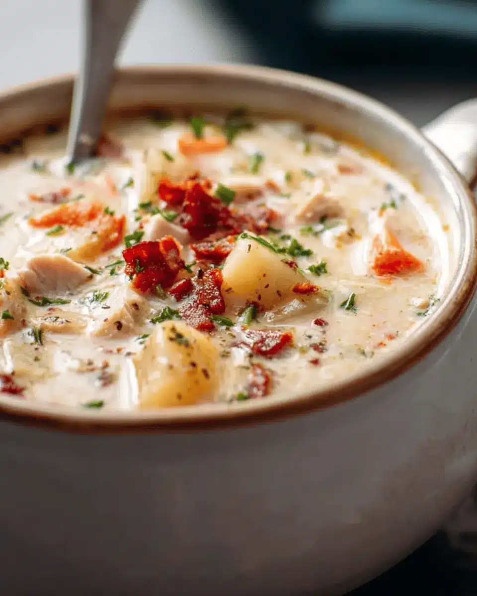 This chicken potato soup is versatile enough to accommodate various dietary preferences. If you're looking to make it vegetarian, simply replace the chicken with plant-based protein and the turkey bacon with smoked tempeh for that delicious smokiness. For a dairy-free version, substitute half and half with coconut milk or an extra cup of chicken broth. You can also use low-sodium broth to control salt intake if you're monitoring your sodium consumption.