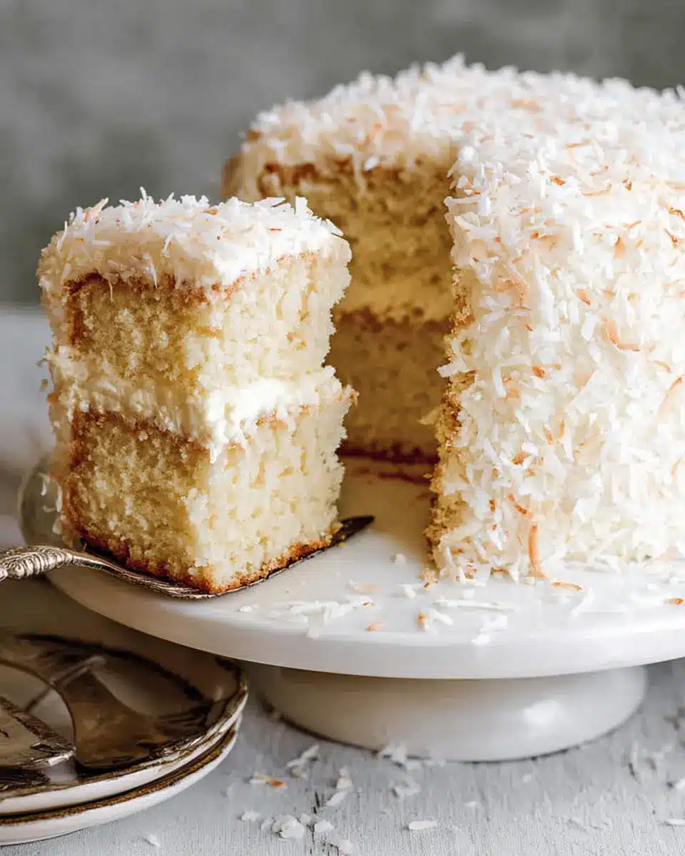 These ingredients create a moist, fluffy cake that is bursting with coconut flavor—just what you expect from a classic Coconut Cake Recipe.