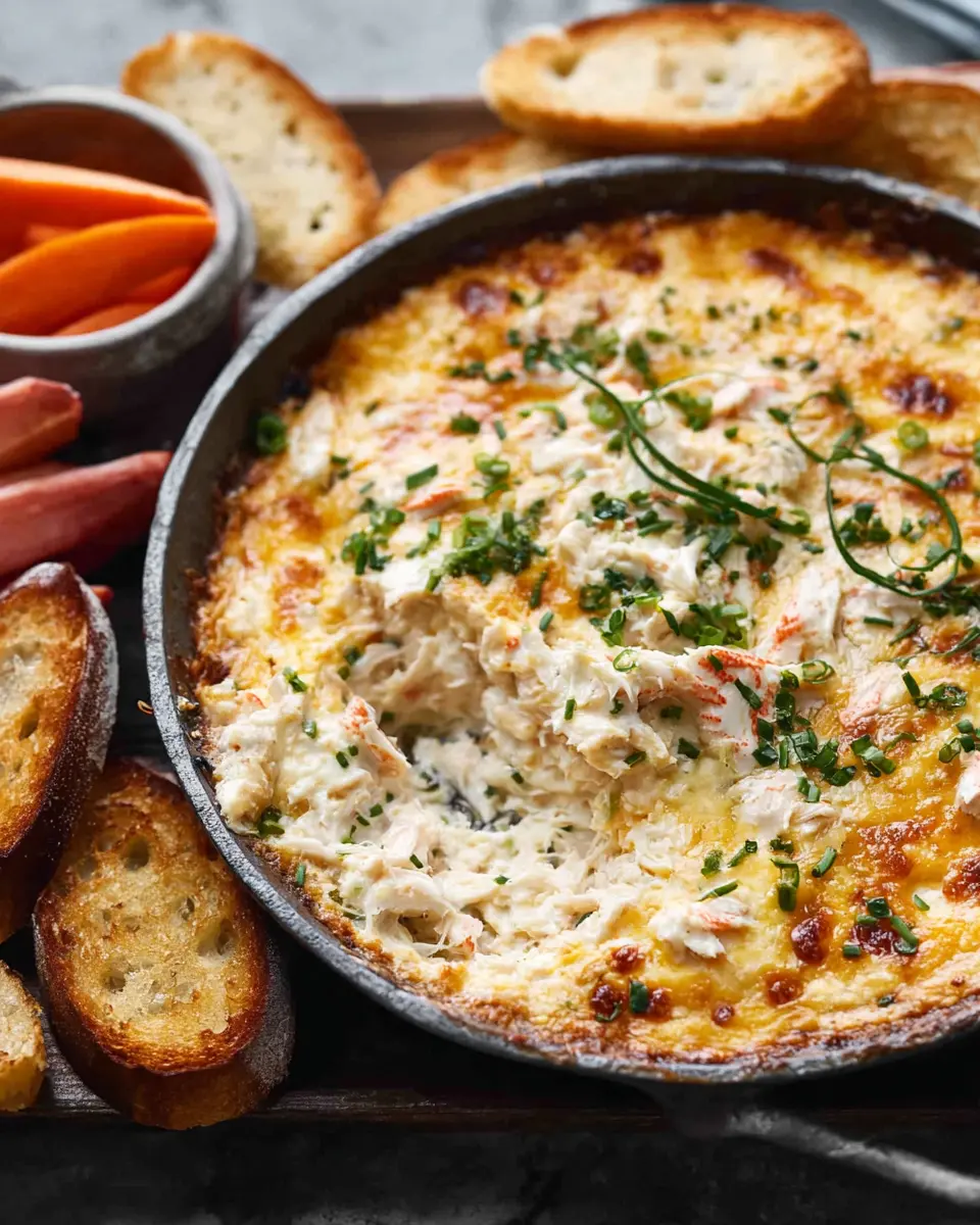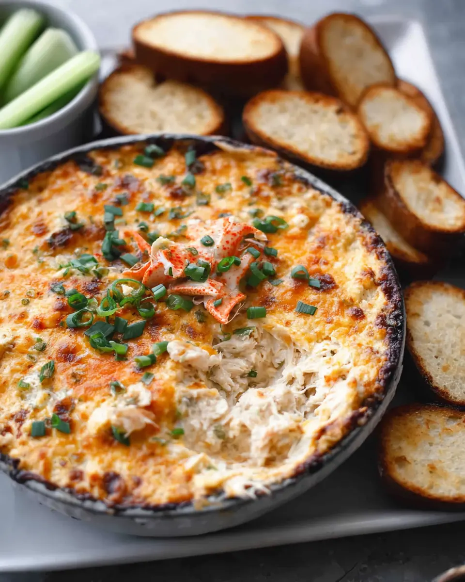 Want to impress your guests? Serve your crab dip in a hollowed-out bread bowl. Not only does this add a charming touch, but it also ensures that every bite is a delicious blend of bread and dip. Crab dip in a bread bowl makes for a stunning centerpiece at any appetizer spread!