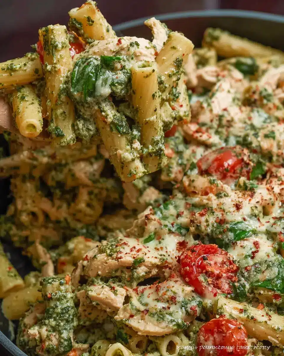 If you’re looking for a dish that effortlessly combines comfort and flavor, look no further than creamy chicken pesto pasta. This delightful recipe features tender chicken and rigatoni pasta embraced by a luscious basil pesto sauce, perfectly complemented by vibrant vegetables like broccoli and spinach.