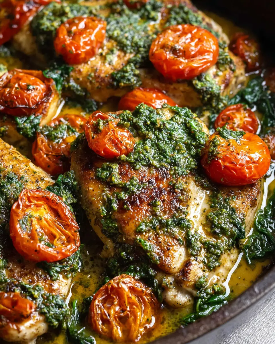 While our Creamy Pesto Chicken with Roasted Tomatoes & Spinach is a delight as is, you can easily customize it! Swap out fresh spinach for arugula for a peppery kick, or toss in sun-dried tomatoes for a burst of concentrated flavor. Both options lend a unique twist while keeping the dish vibrant and healthful. For another layer of depth, consider incorporating a splash of lemon juice or zest—just a hint can brighten everything up!