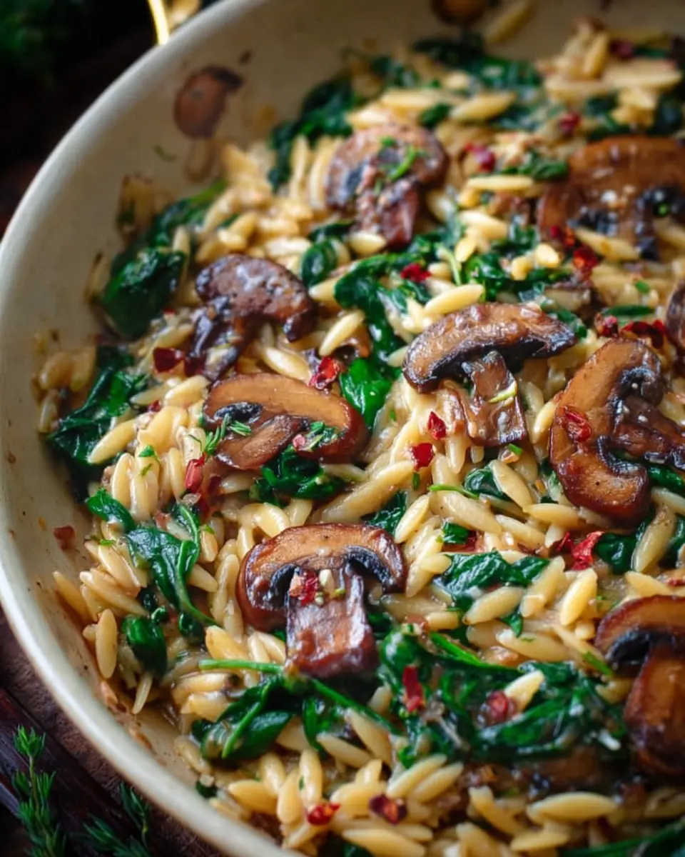 Creamy Spinach and Mushroom Orzo (30 Minutes, ONE-PAN)