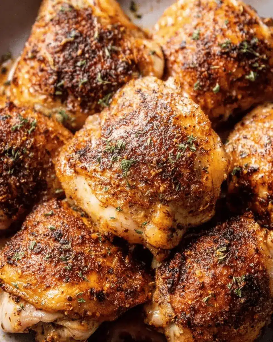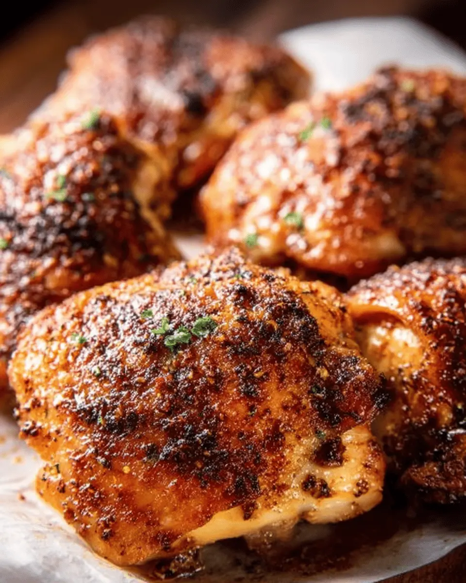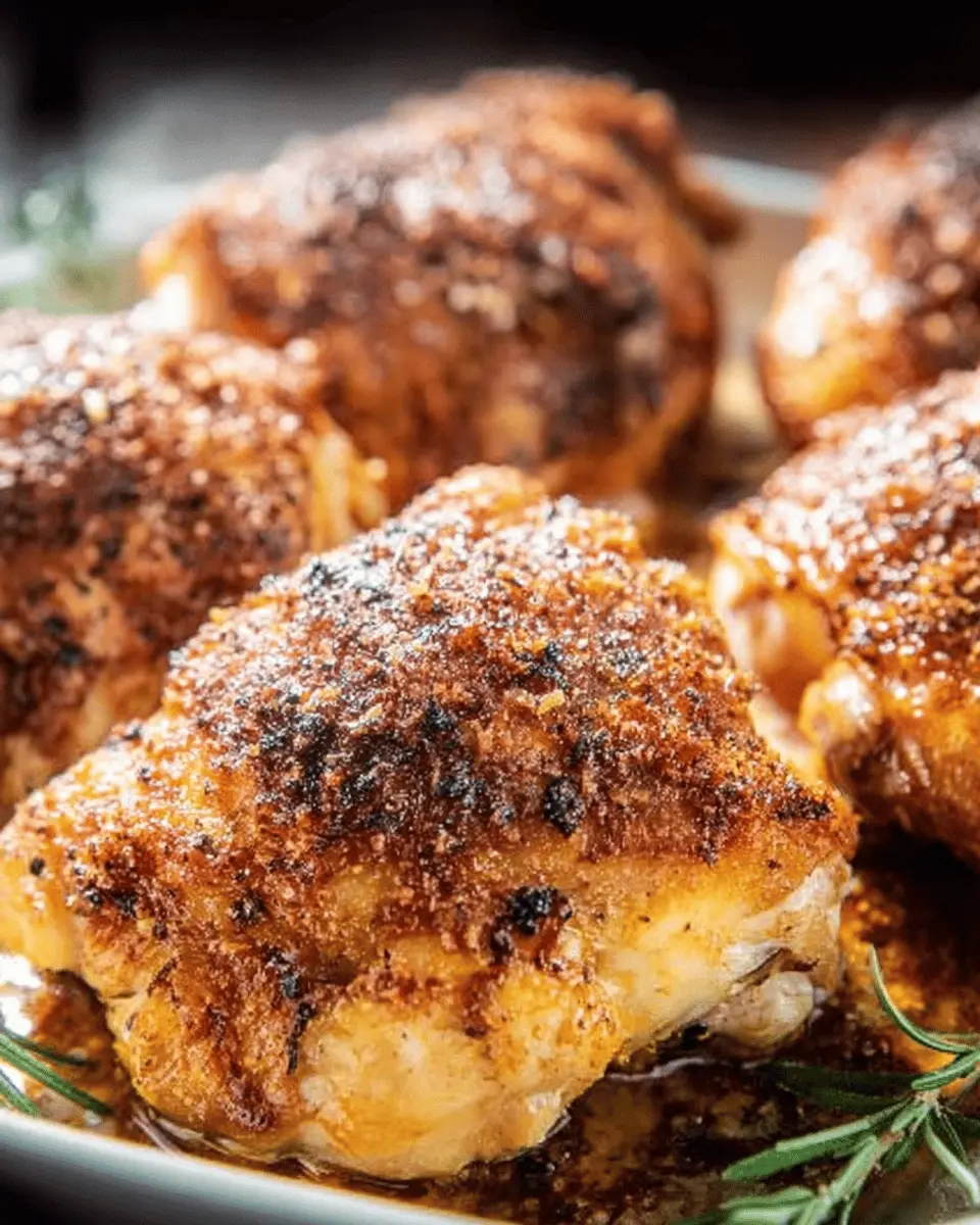 Pair your crispy baked chicken thighs with a side of roasted vegetables or creamy mashed potatoes for a comforting meal. A fresh, crunchy salad can also complement the rich flavors of the chicken beautifully. Don't forget some crusty bread to soak up any delicious juices!