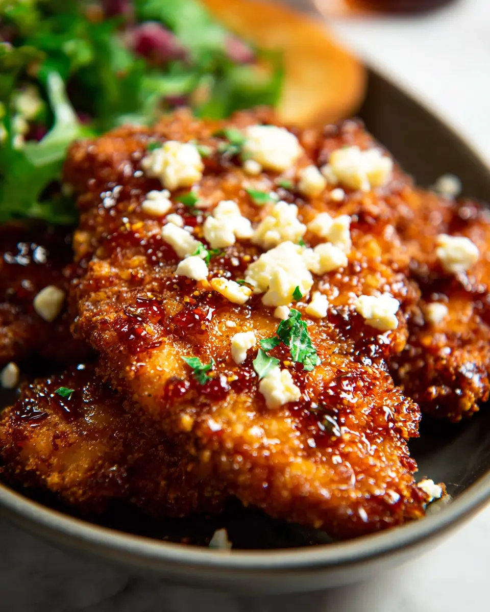 Creating this crispy hot honey feta chicken is like giving your taste buds a joyous celebration. The combination of savory chicken, tangy feta, and the spicy sweetness of hot honey is simply irresistible. As you embark on making this dish, let’s walk through each step together.