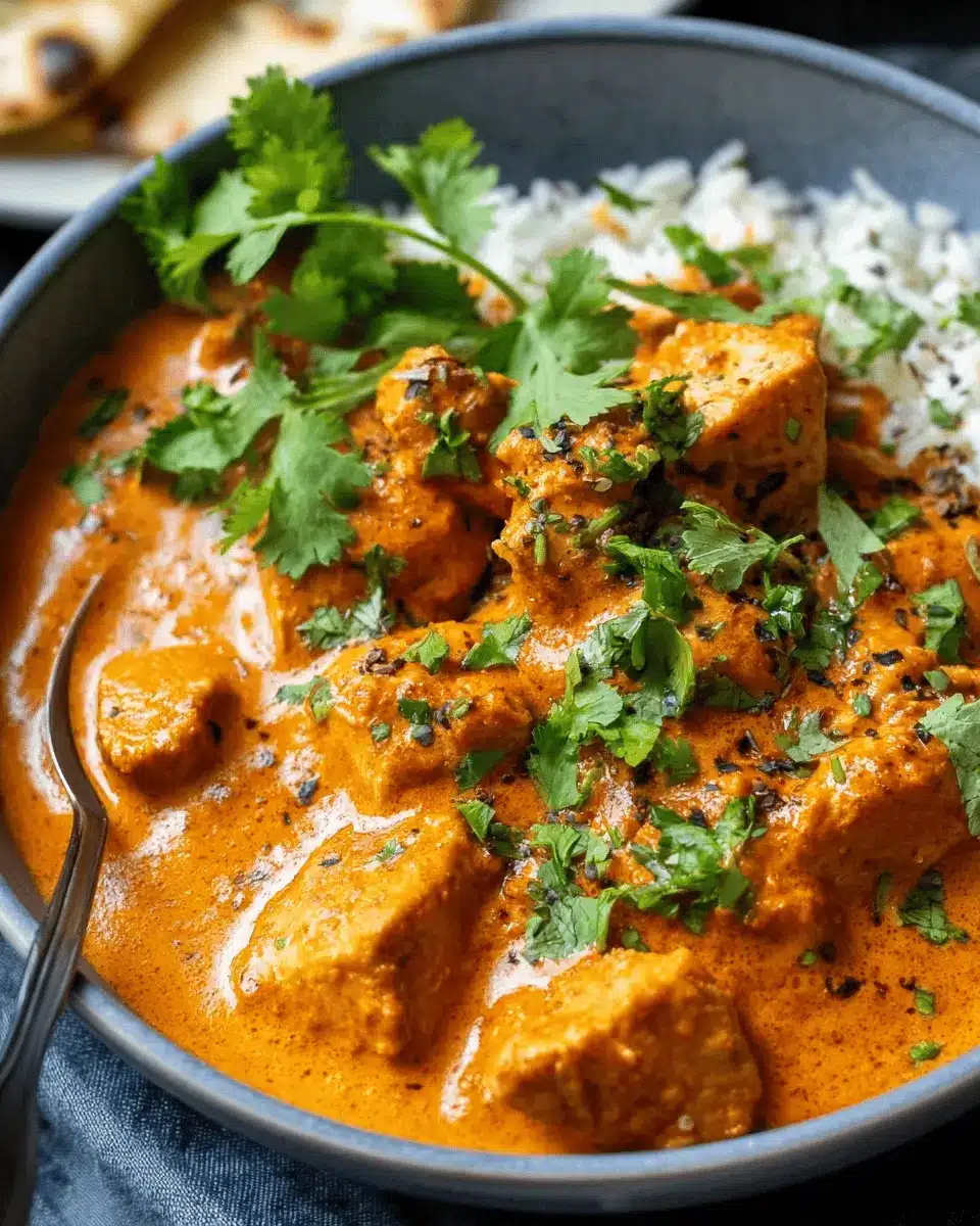 Now that your easy 20 minute butter chicken is ready, it’s time to make it visually appealing. Serve generously over a bed of hot, fluffy basmati rice or alongside warm naan. You can also garnish with fresh cilantro for an extra pop of color and flavor.