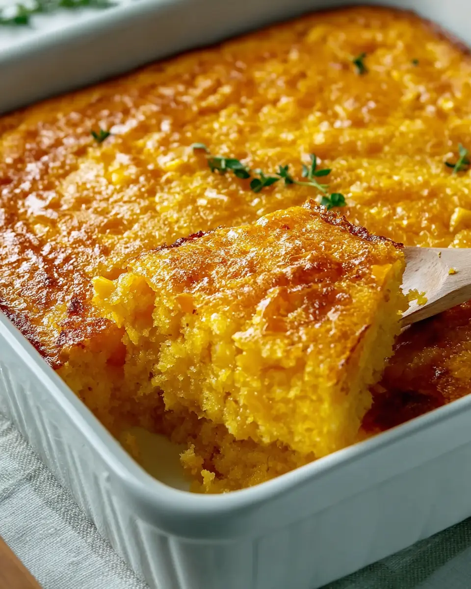 Once the timer goes off, take a moment to admire your work as you pull the easy corn pudding from the oven. Allow it to cool for a few minutes before serving. This dish pairs wonderfully with turkey bacon or chicken ham, making it a versatile addition to any meal. Share it with friends and family, and don’t forget to savor every delicious bite. Remember, great food is meant to be enjoyed together!
