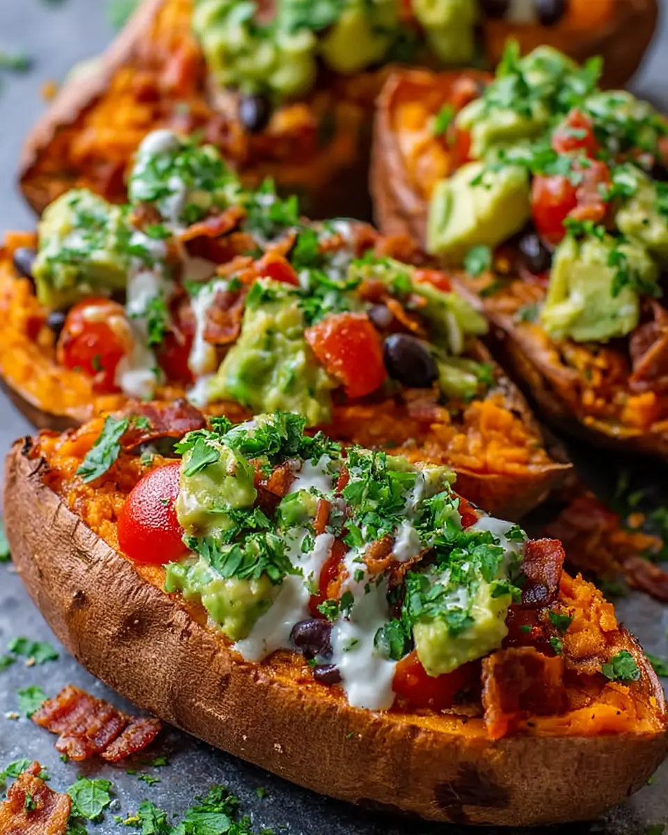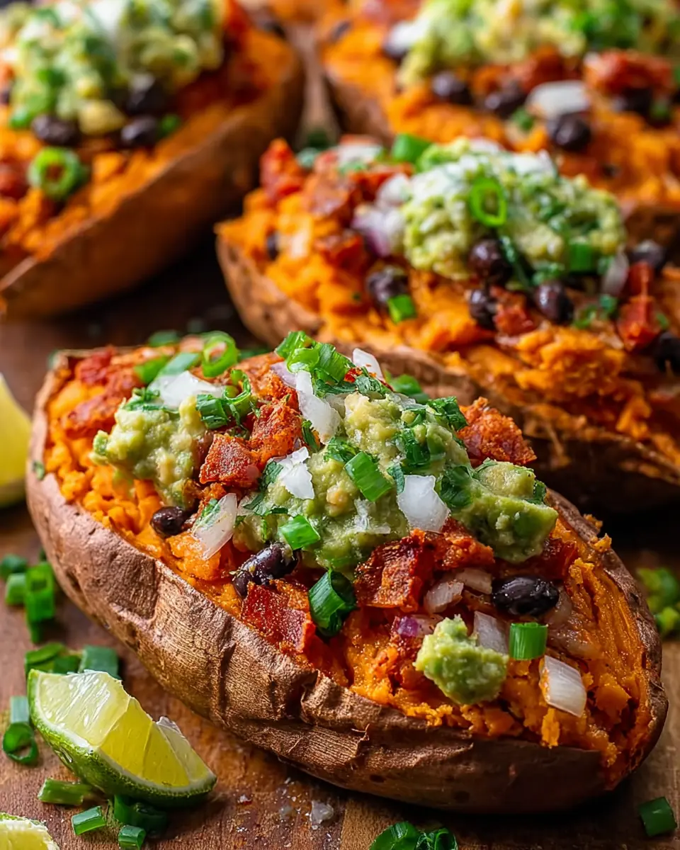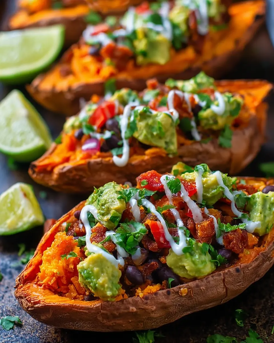 Absolutely! Easy loaded sweet potato boats can easily be transformed into vegetarian or vegan options. Simply omit any meat or dairy ingredients and load up on your favorite veggies and grains. For a vegan twist, swap out the avocado topping for a plant-based yogurt or tahini sauce. Just ensure that all your toppings are plant-based, and you’re good to go!