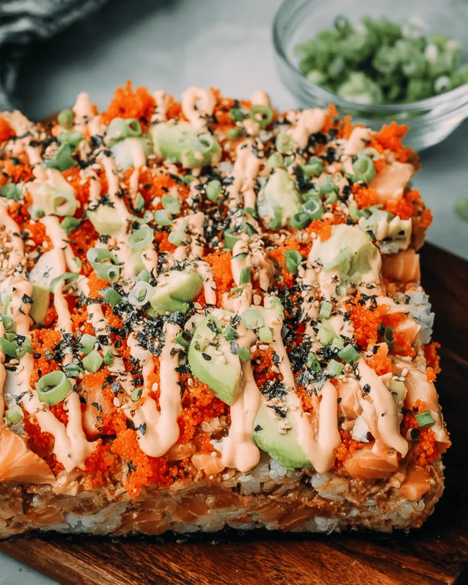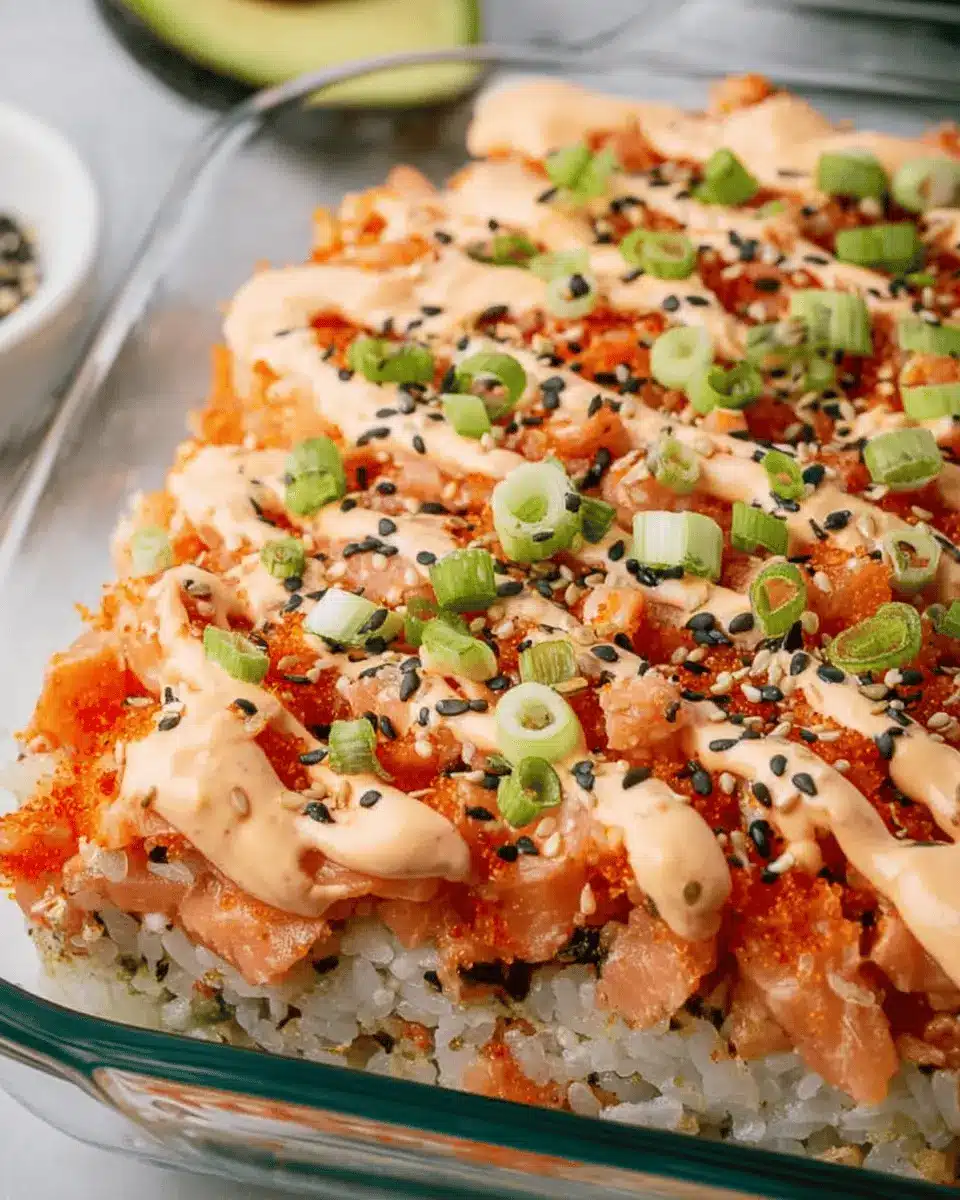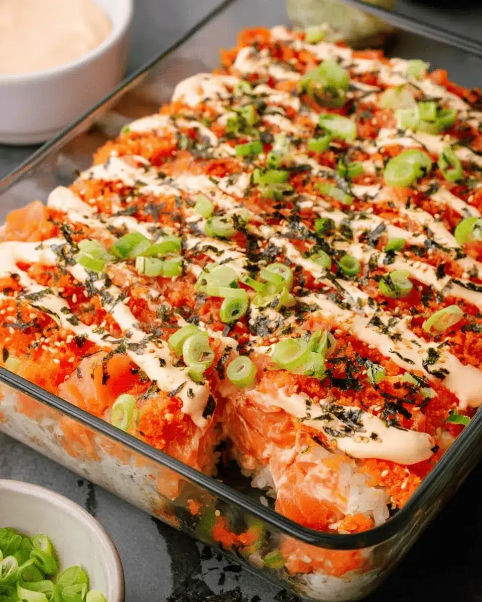 Easy Salmon Sushi Bake with Creamy Spicy Mayo