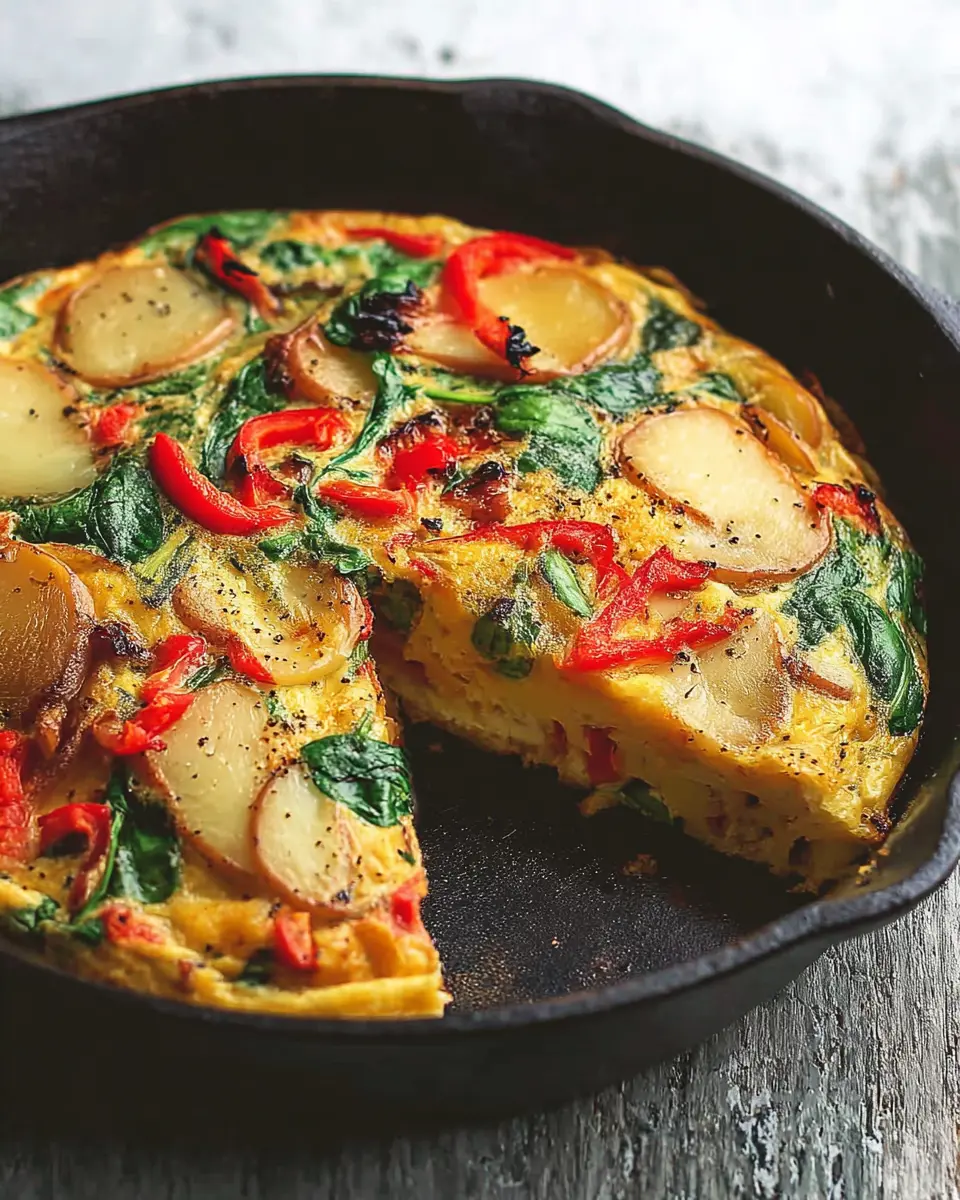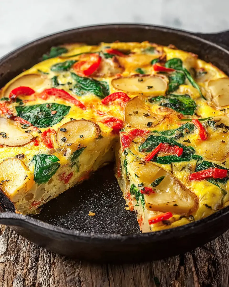 Frittata with Potatoes, Red Peppers, and Spinach