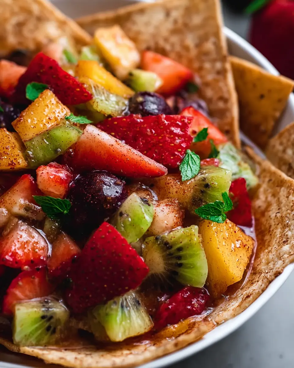 Definitely! You can prep the fruit and store it separately in the fridge a few hours ahead. Just mix in the lime juice and honey right before serving. The cinnamon sugar tortilla chips can also be made in advance; they’re best served freshly baked, but you can store them in an airtight container at room temperature. Just pop them in the oven for a few minutes to regain their crispiness when it's time to enjoy.