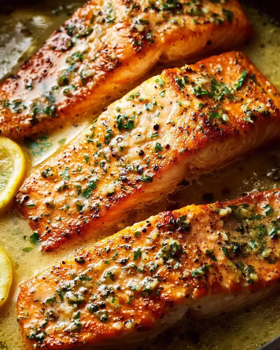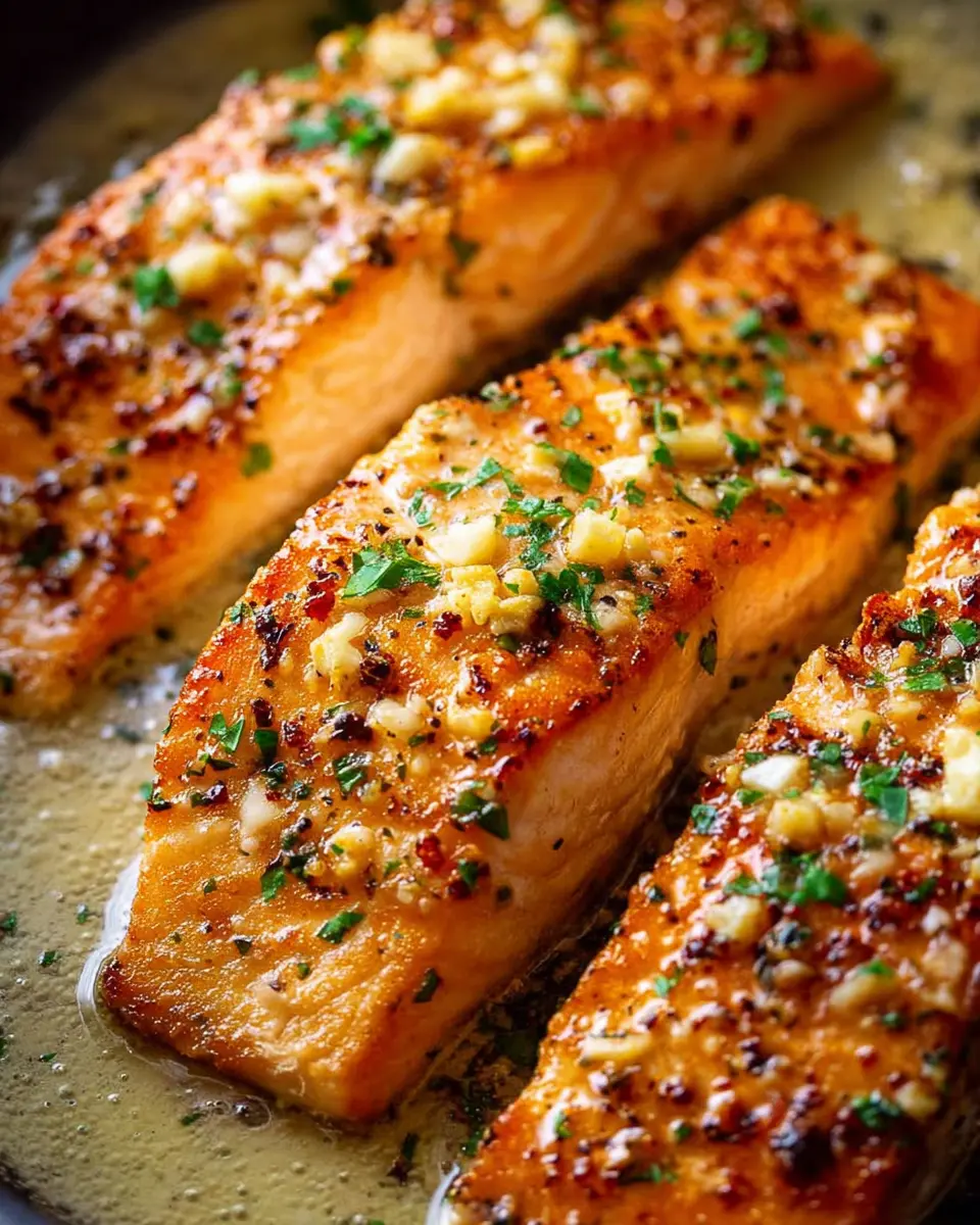 To achieve that coveted golden-brown crust on your garlic butter salmon recipe, let your salmon rest at room temperature for about 30 minutes before cooking. This helps it cook evenly. Use a well-heated, non-stick skillet with a touch of olive oil for the best sear. Place the salmon presentation side down and resist the urge to move it around for at least three minutes—this allows the fish to develop a crust that enhances flavor and texture.