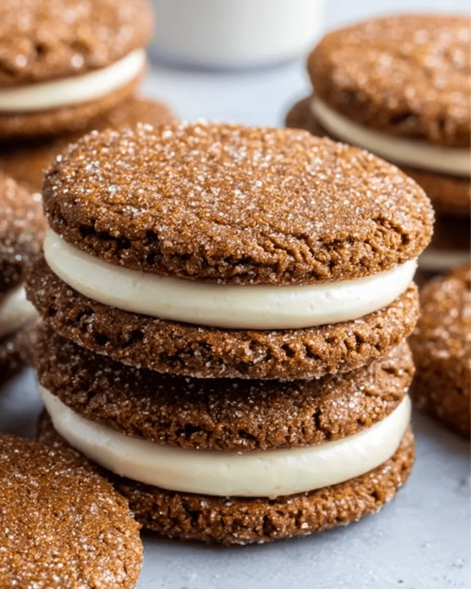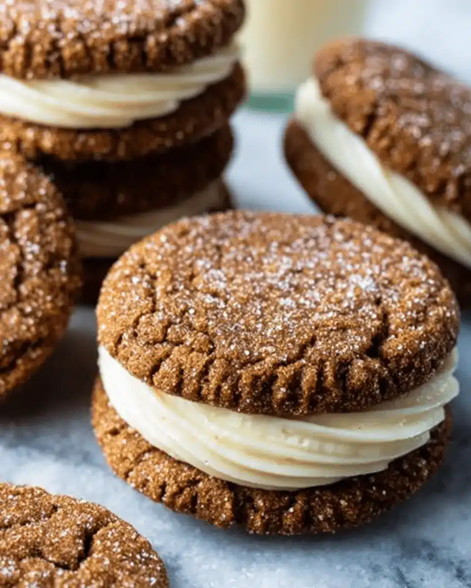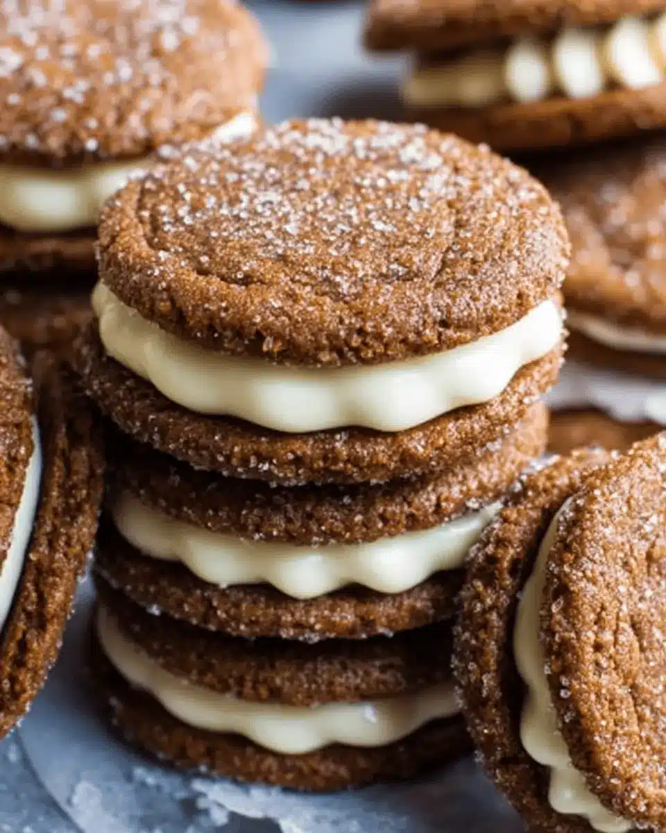 These Ginger Molasses Sandwich Cookies are more than just a treat; they embody comfort and warmth, perfect for cozy gatherings. With their soft, chewy texture and rich eggnog frosting, they’re sure to be a delightful addition to your holiday spread. Enjoy baking and sharing these sweet delights!