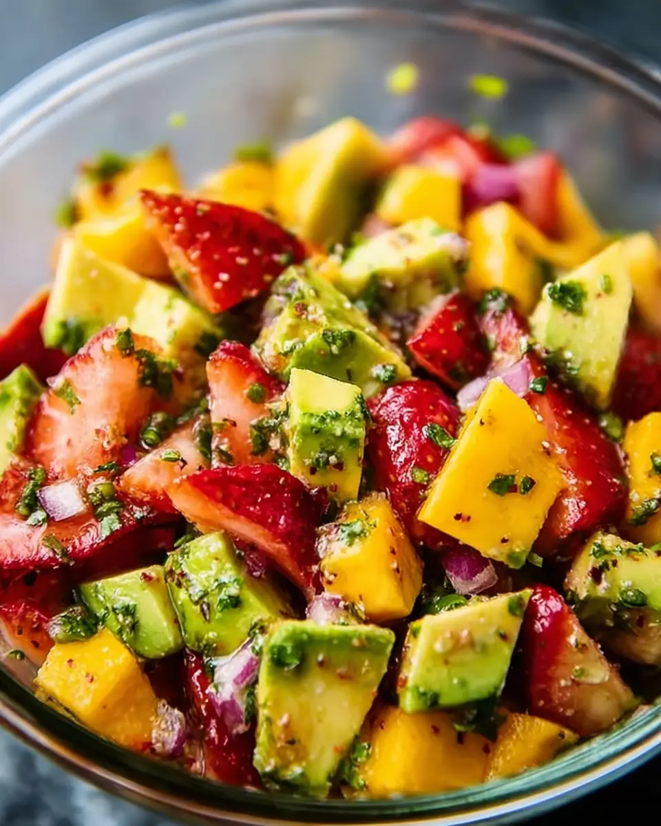 In summation, this Gorgeous Avocado Strawberry Mango Salsa is not just a feast for the eyes but a burst of flavor that your taste buds will love. Perfect for gatherings or a light snack, it not only elevates your meals but also brings a smile to your face. Enjoy!
