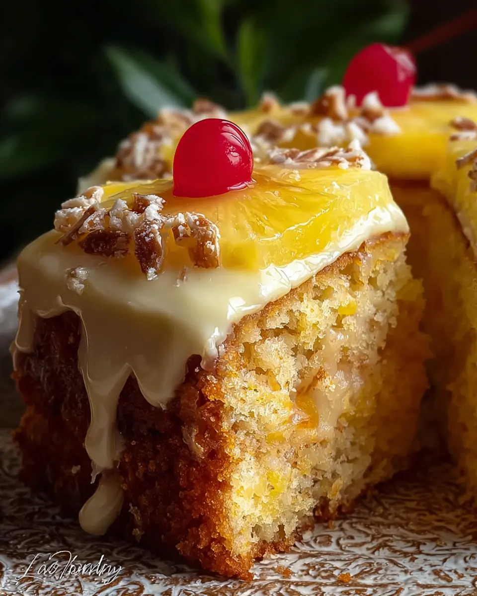 And there you have it—your delightful Hawaiian Pineapple Cake in all its glory! Enjoy slicing and serving this tropical treat, whether it’s for a special occasion or just a simple dessert to brighten your day.