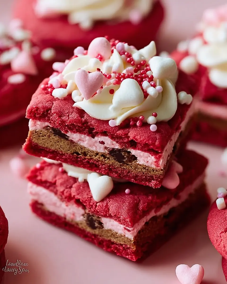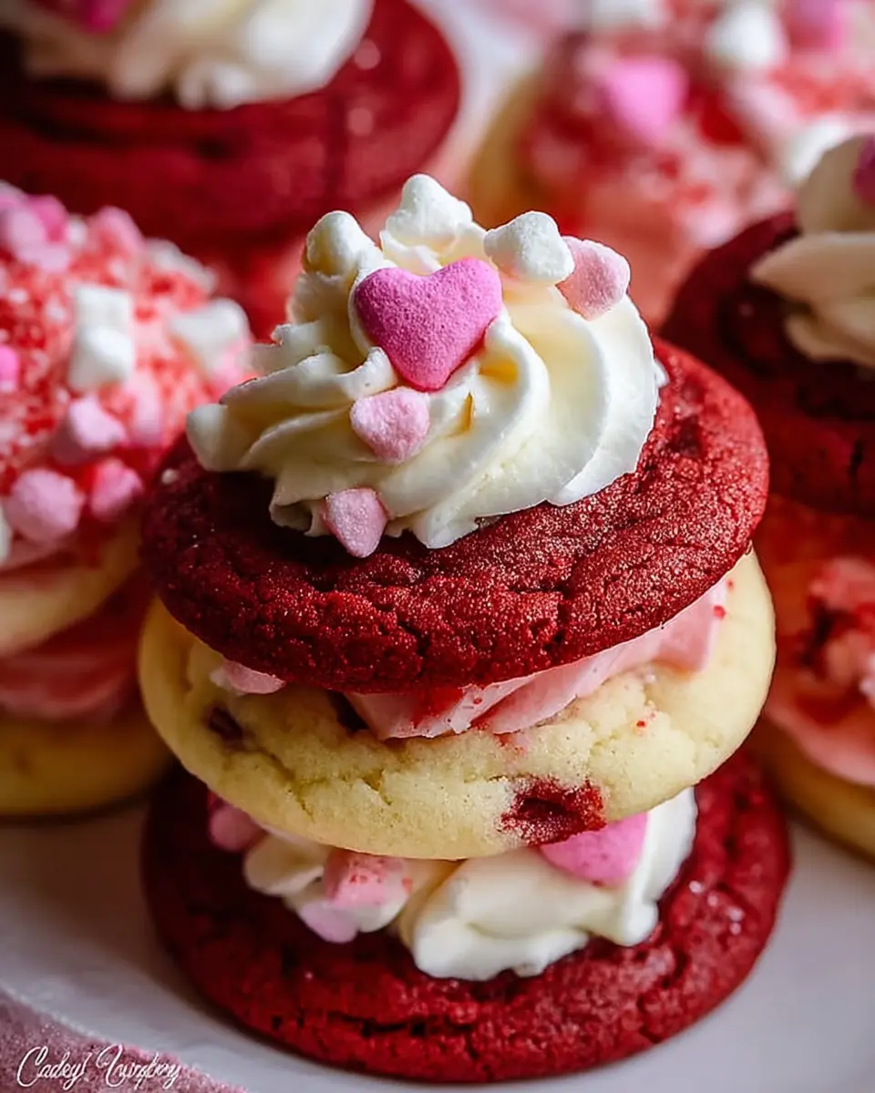 Why not elevate your homemade Valentine treats with a fun spin? Create scrumptious red velvet cookie sandwiches filled with creamy, tangy cream cheese frosting. First, prepare the red velvet cookie dough as shown in our main recipe. Once your cookies cool, spread a generous layer of cream cheese frosting between two cookies, then gently press them together. The result? A beautifully indulgent dessert that’s perfect for sharing with loved ones. For a heightened experience, consider rolling the edges in sprinkles or crushed nuts for an extra touch of flair!