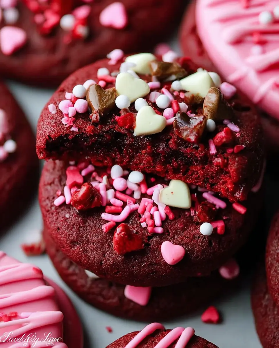 When it comes to homemade Valentine treats, presentation is key! Start by placing these delightful red velvet cookies on festive heart-shaped platters or in cute gift boxes for a charming touch. Pair them with a glass of creamy milk or a warm cup of hot chocolate for that cozy feel. You can also add a personal twist by dusting some powdered sugar on top or drizzling extra melted white chocolate for a sweet finishing touch. For an extra special gift, wrap these treats in cellophane, tie with a ribbon, and share with friends, family, or that special someone!