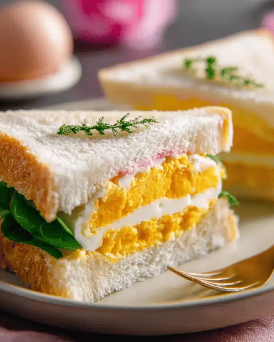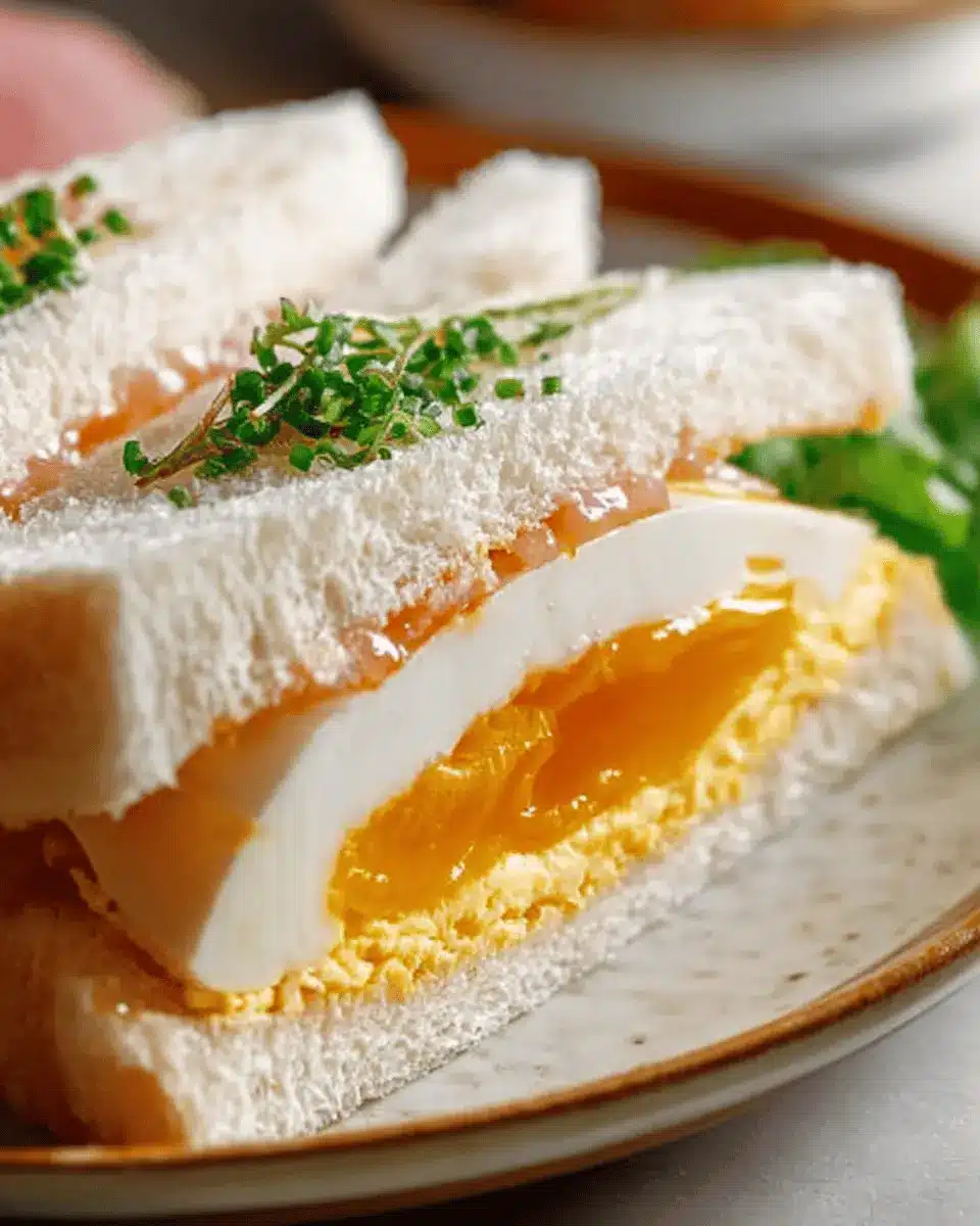 The presentation of your Japanese Egg Sandwich is a key part of the experience. Arrange the neatly cut sandwiches on a platter and perhaps garnish with some fresh greens on the side.