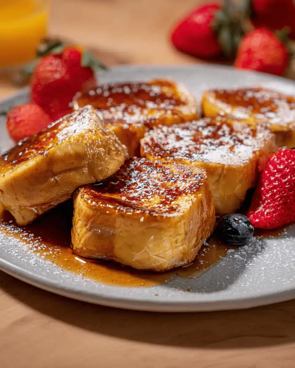 Your King’s Hawaiian Classic French Toast is now ready to shine! Serve it warm, topped with a generous helping of fresh fruits such as strawberries, blueberries, or raspberries. These not only add a pop of color but also enhance the flavor. Enjoy your creation with a cup of coffee or a refreshing juice, and watch your taste buds revel in happiness. Bon appétit!