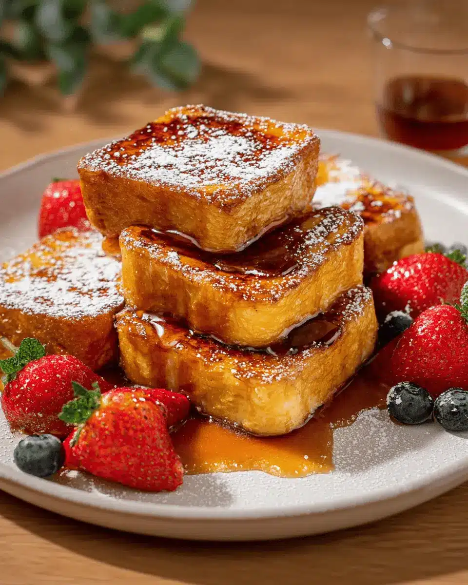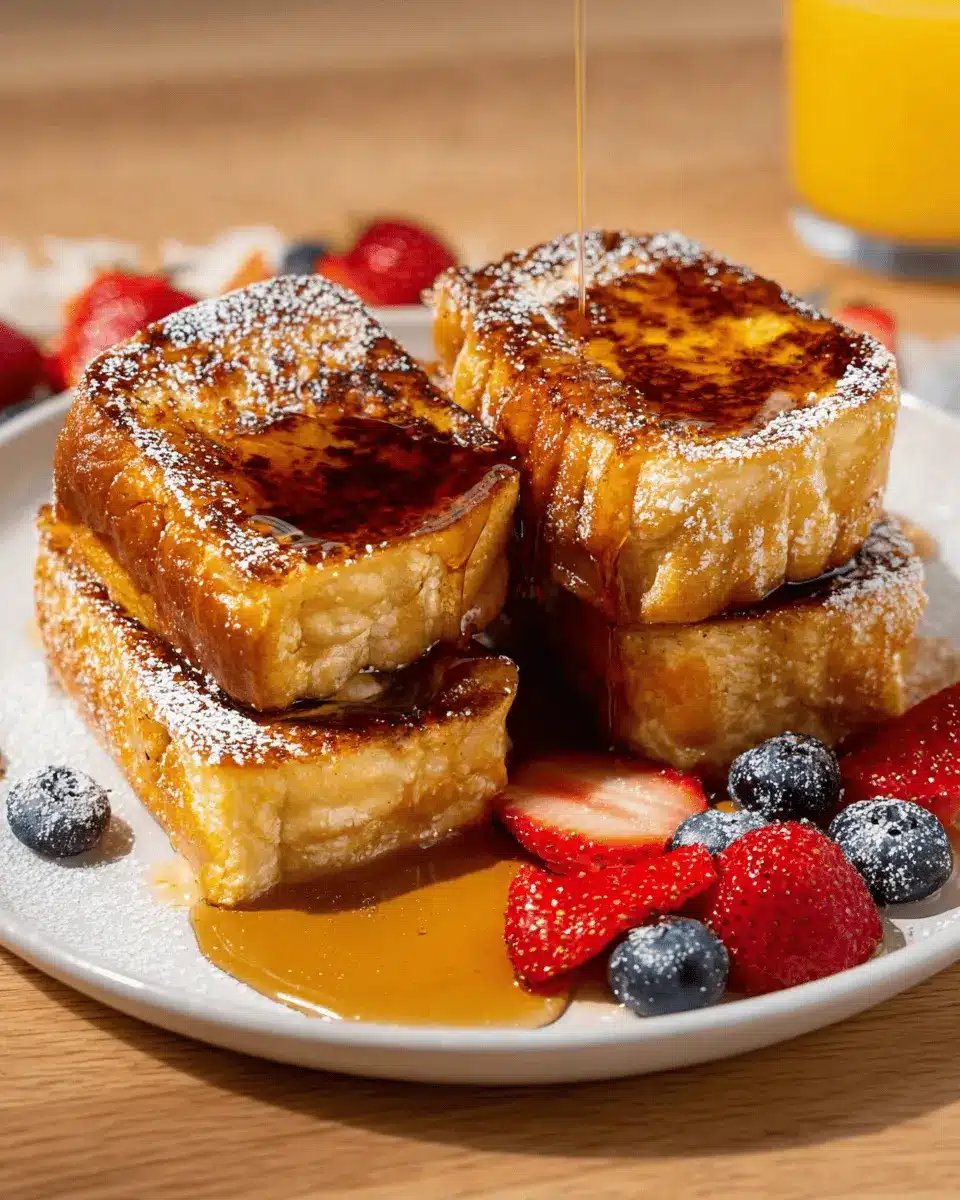 For a vibrant burst of flavor, top your King’s Hawaiian Classic French Toast with an array of fresh berries like strawberries, blueberries, and raspberries. Not only do they add a pop of color, but these juicy fruits are packed with vitamins and antioxidants, making your breakfast both delicious and nutritious. Consider a light sprinkling of powdered sugar for an extra touch of sweetness.