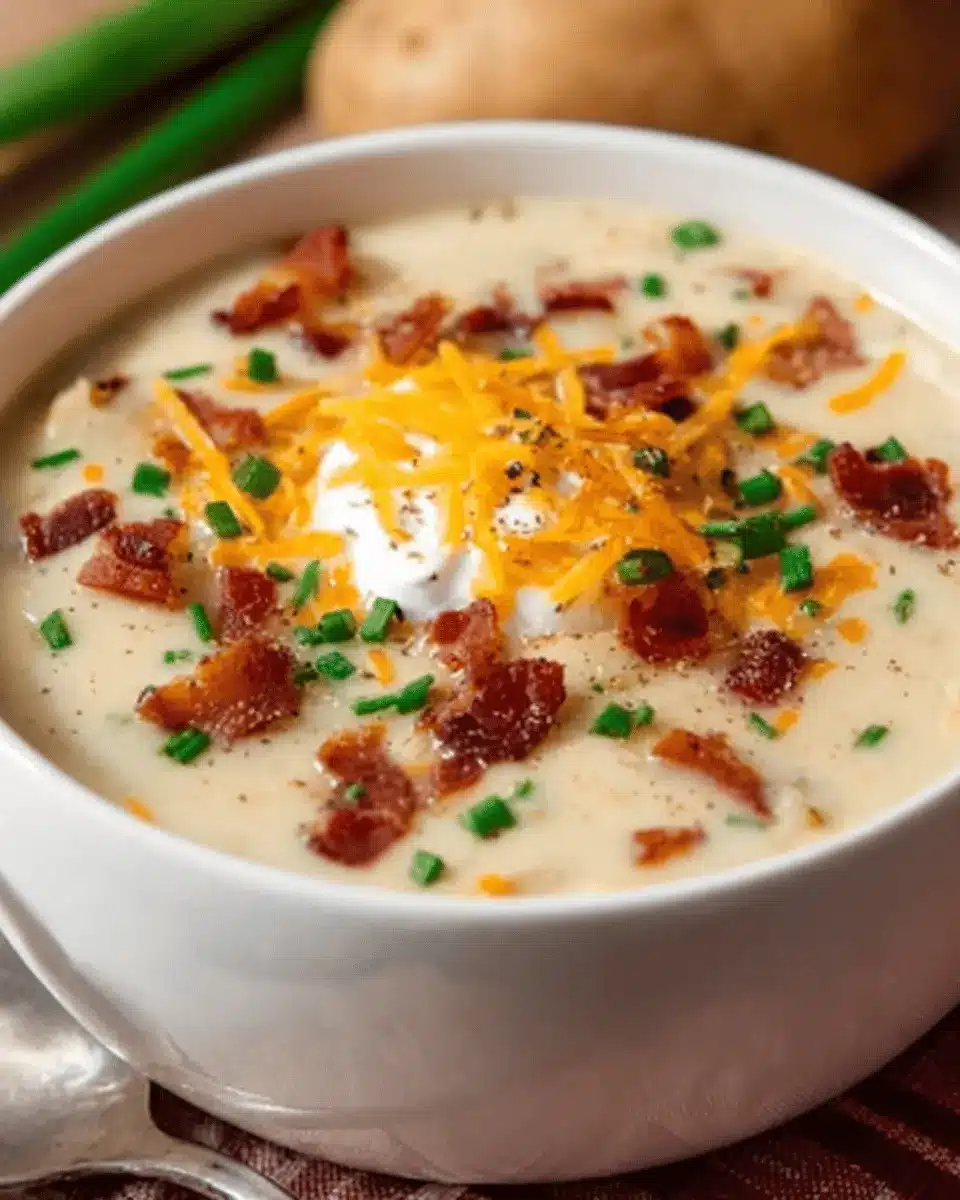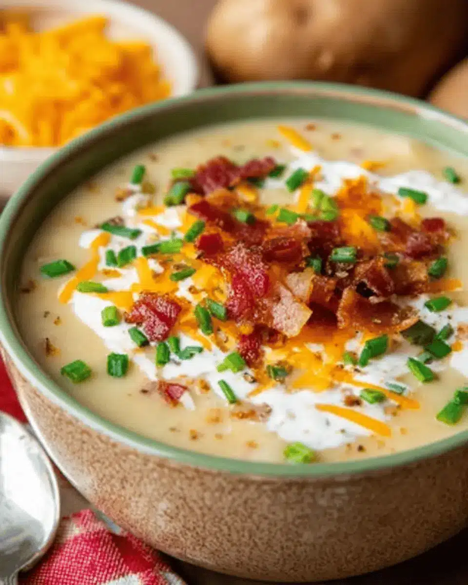 In summary, this loaded baked potato soup comes together quickly and easily, making it perfect for busy weeknights or cozy weekends. Each spoonful is creamy and packed with flavor, sure to become a family favorite. Try this recipe today for a warm, comforting meal that’s simply delightful!