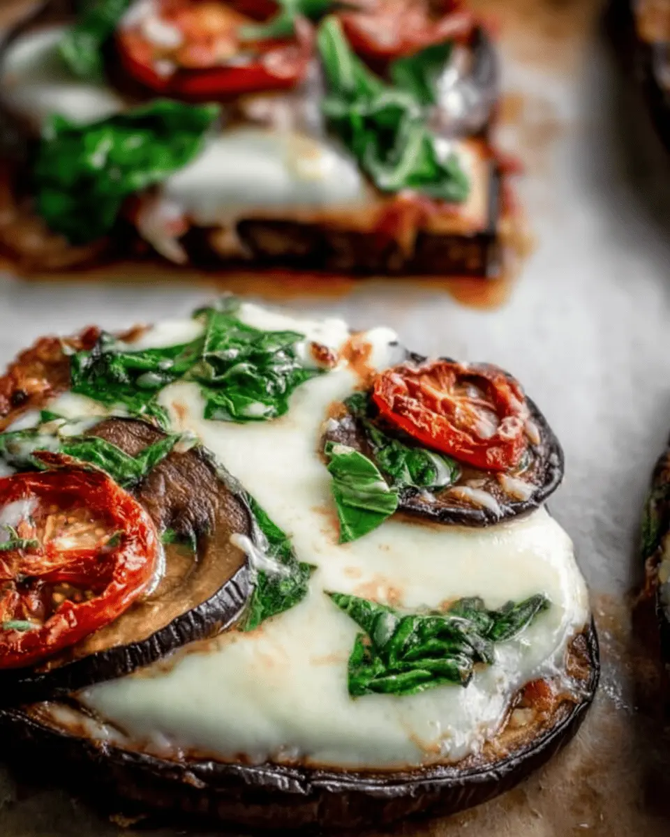 For a Mediterranean twist, top each eggplant round with roasted zucchini, bell peppers, and kalamata olives. Sprinkle crumbled feta over the cheese before broiling for a salty, vibrant finish. Don’t hesitate to personalize with your favorite veggies or herbs for a fresh touch!
