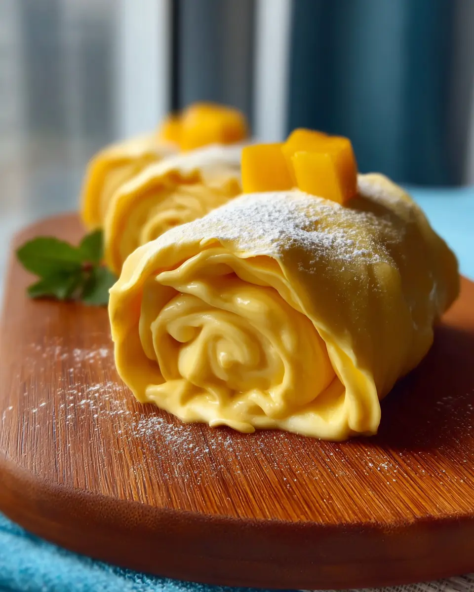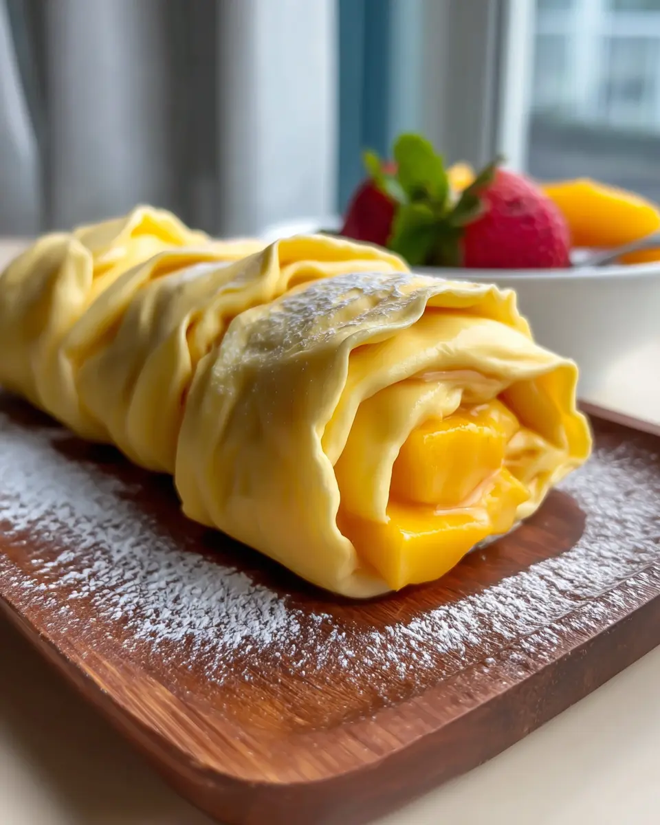 Presenting your Mango Crepe Roll to impress is half the fun! Try stacking the rolls in a tiered arrangement on a decorative platter for a stunning centerpiece. Drizzle mango puree or a hint of caramel sauce over the top for a pop of color and flavor. Garnish with fresh mint leaves or a dusting of powdered sugar to elevate your presentation. You could also add a scoop of vanilla ice cream or dollop of whipped cream alongside for a delightful contrast.