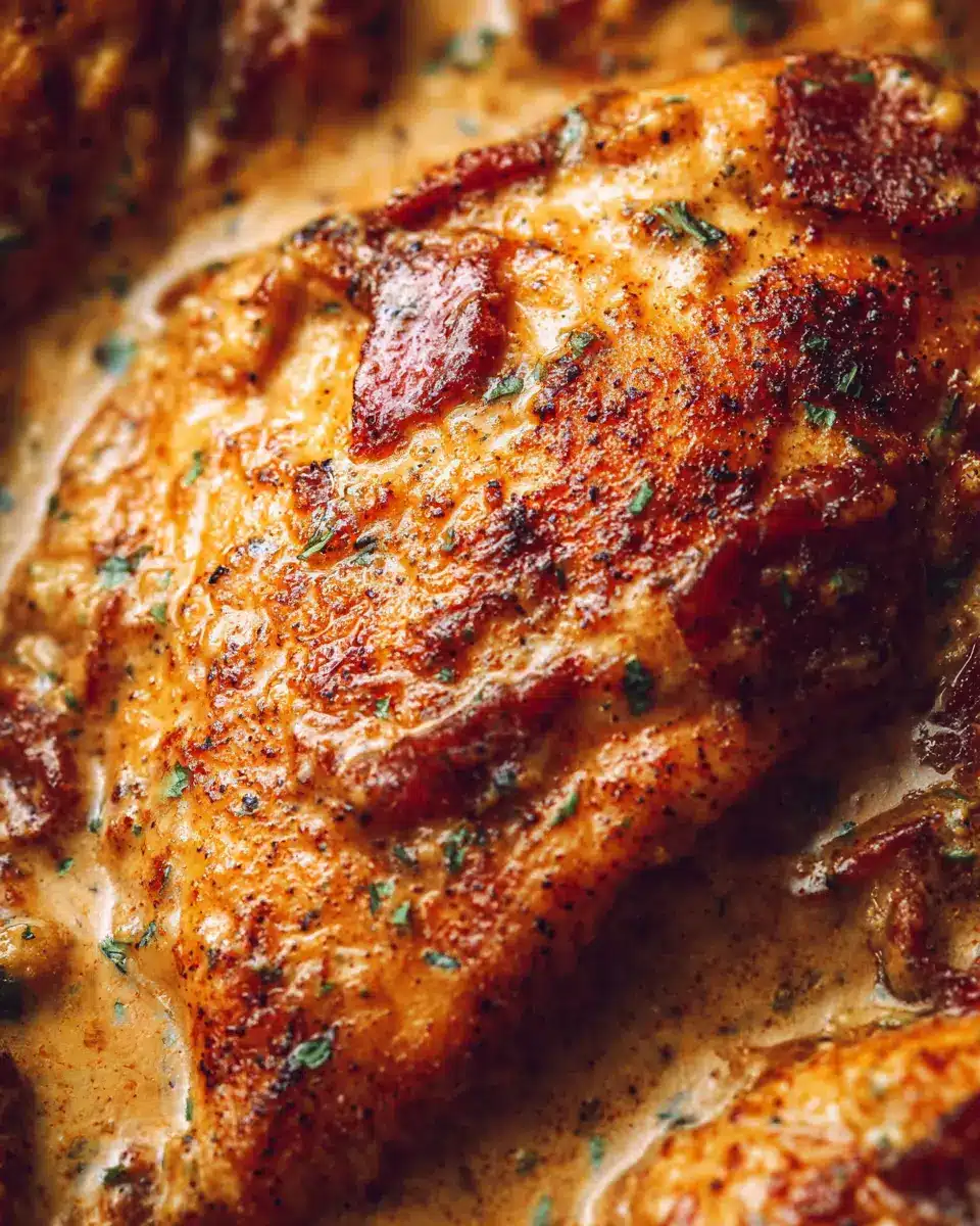 Now it’s time for a dreamy reunion! Add the sundried tomatoes to the sauce, then gently return the chicken to the skillet. Allow everything to simmer together for a few more minutes so the flavors meld beautifully. Garnish with fresh basil before serving.