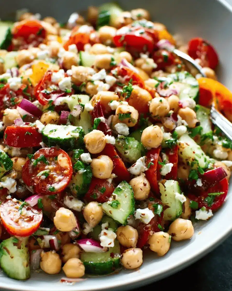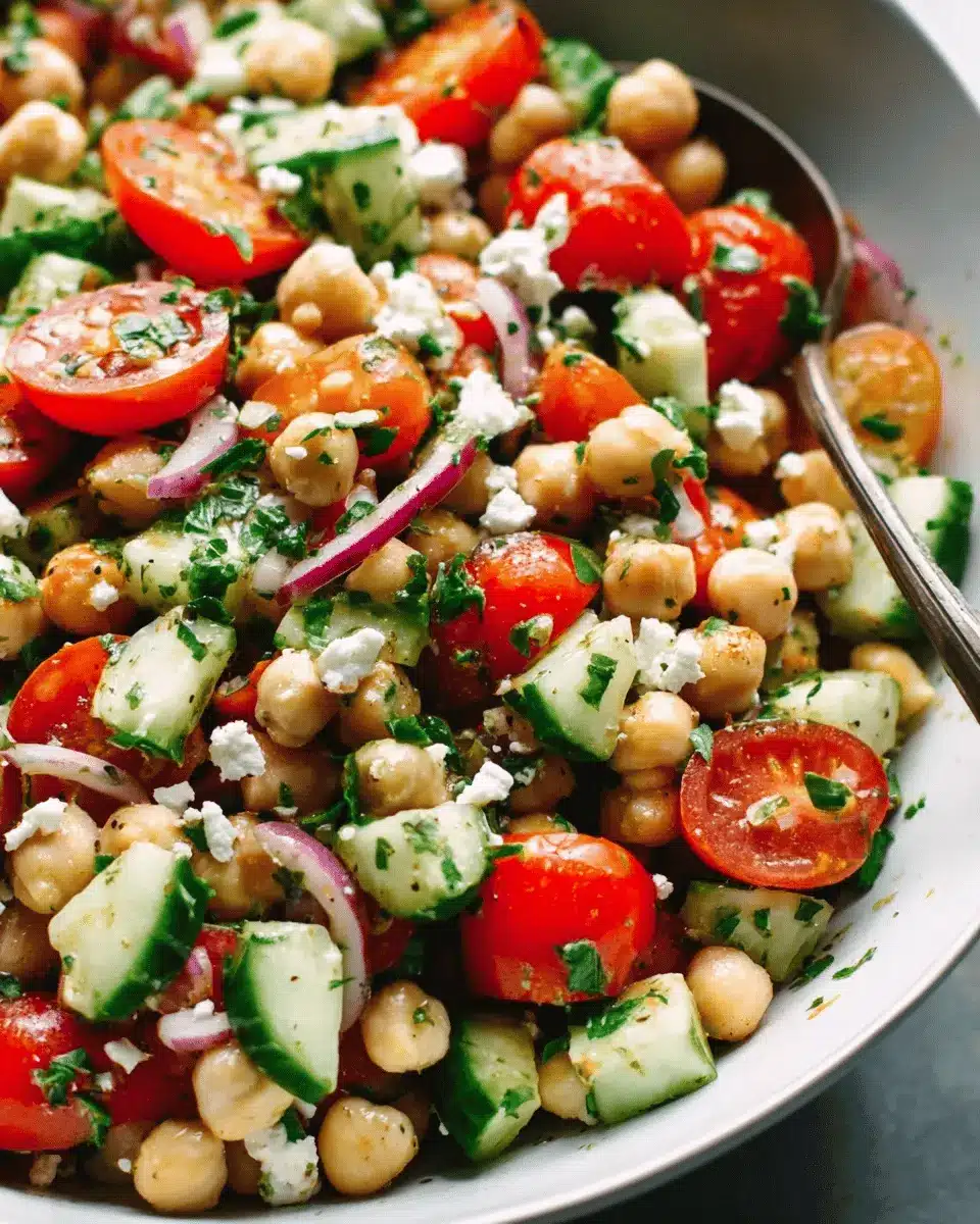 Elevate your Mediterranean Chickpea Salad with some exciting additions! Consider adding: