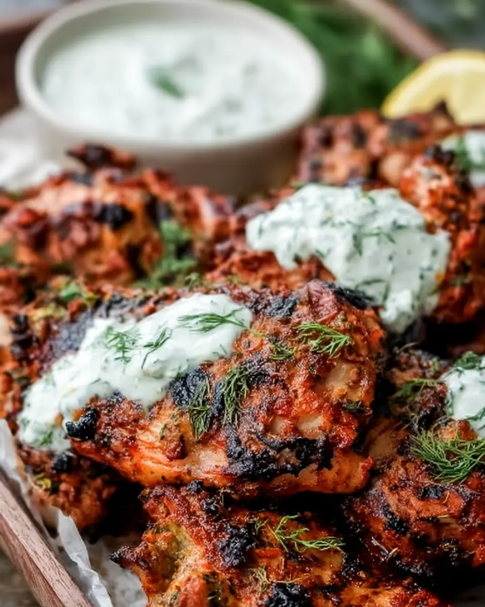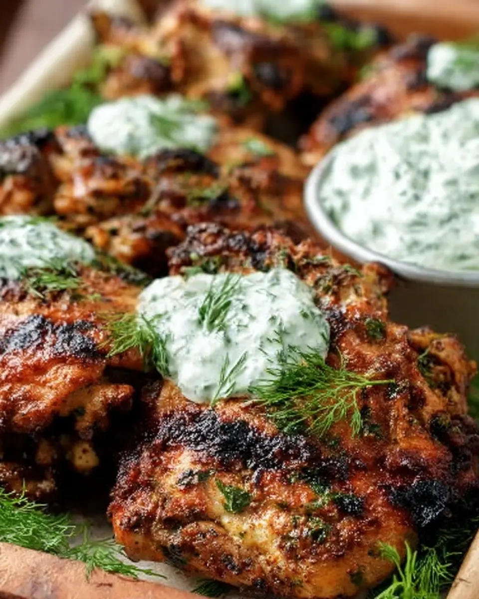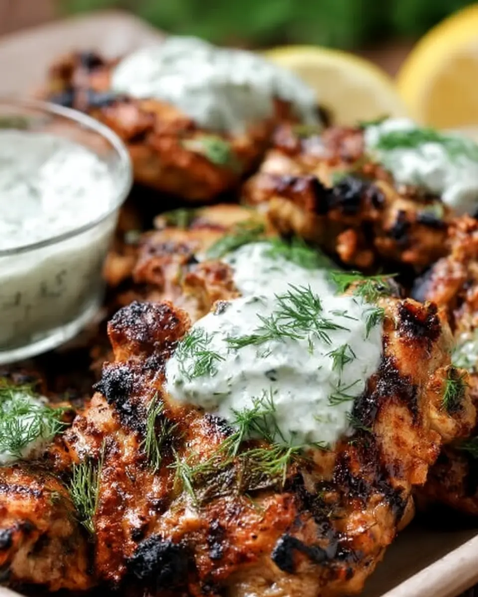 Mediterranean Grilled Chicken Thighs with Dill Yogurt Sauce