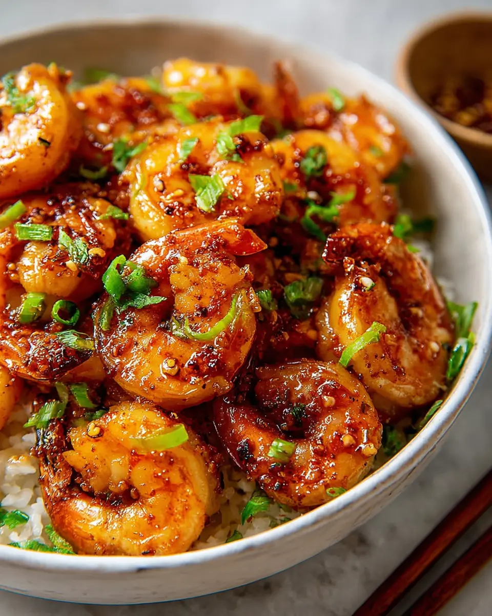 Now comes the magic! Pour the honey over the cooked shrimp and toss gently to coat evenly. If you’re feeling adventurous, sprinkle in some chili flakes for an extra kick. Once coated, remove the pan from heat and serve immediately. Garnish with sliced green onions, and watch as your minute honey garlic shrimp disappears off the plate!