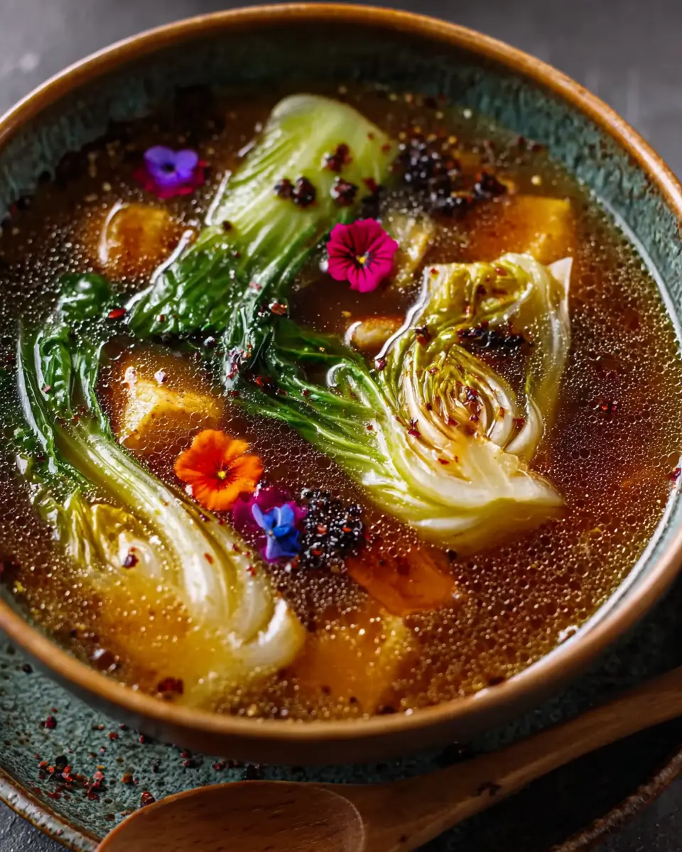 This broth pairs wonderfully with a variety of sides. Consider serving it with rice noodles, steamed dumplings, or even adding it to grain bowls. For a heartier meal, try topping it with some grilled tofu or sautéed veggies for added nutrition and texture.
