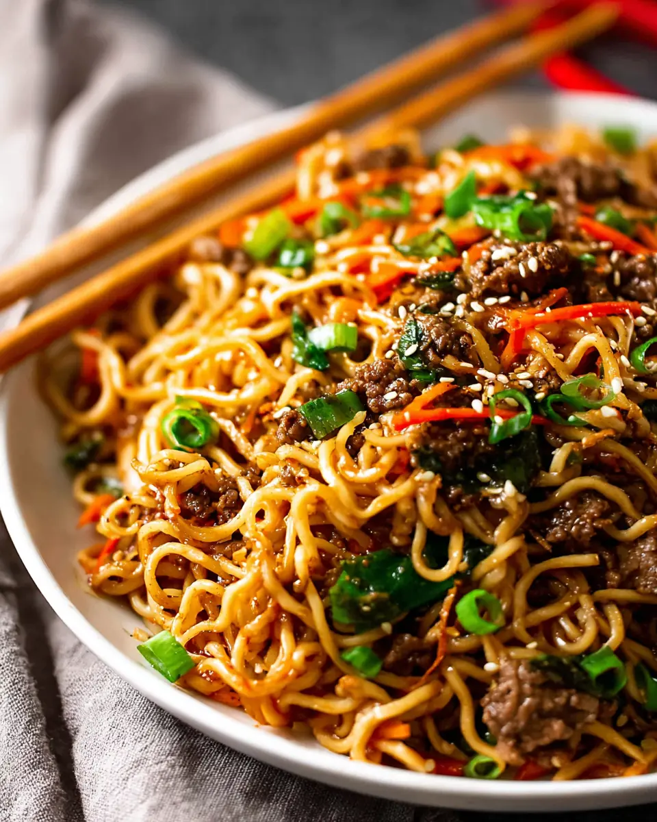 Feel free to customize your Mongolian noodles with alternative ingredients! Instead of ground beef, try ground turkey or even tofu for a vegetarian option. For the vegetables, snap peas can be replaced with broccoli or bell peppers—whatever you have on hand. Low-sodium soy sauce is great for health-conscious cooks, but coconut aminos work well, too.