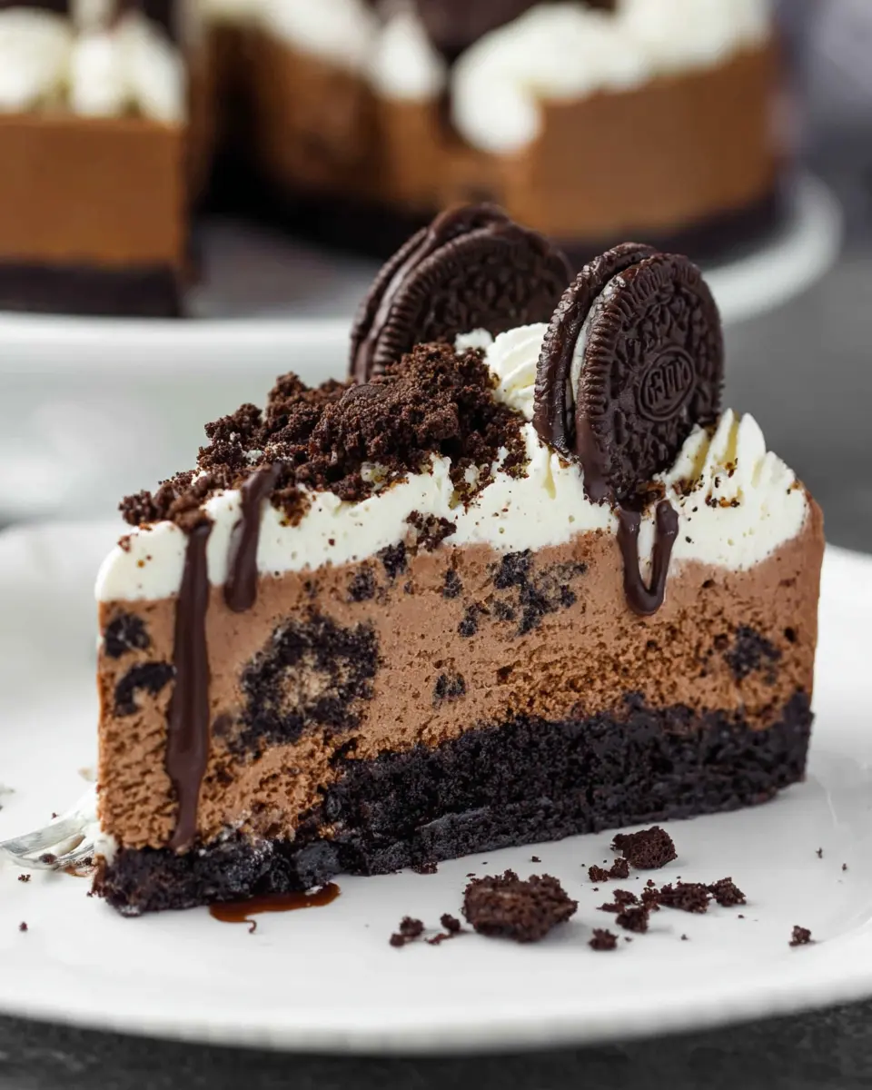 Presentation is key to impressing your guests. Serve your no-bake chocolate Oreo cheesecake on a decorative cake stand for a charming display. Garnish with crushed Oreos and a sprinkle of cocoa powder for a polished look. You can even add some mint leaves for color contrast. For a personal touch, share a fun story about your cheesecake-making adventure as you serve—your friends will love it!
