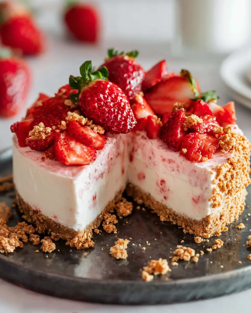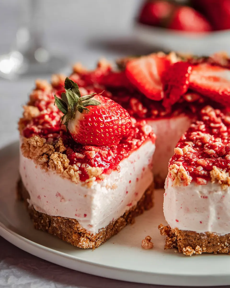 By following these steps, you’ll have a show-stopping dessert that is not only visually appealing but also a delight to the taste buds. Enjoy making memories with each delicious bite of your no-bake strawberry crunch cheesecake!