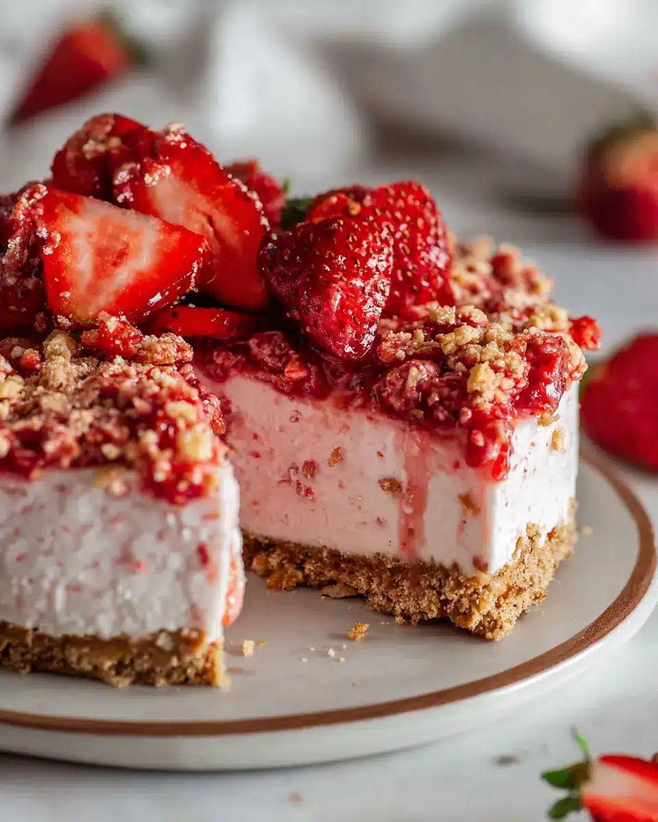 In summary, this No-Bake Strawberry Crunch Cheesecake is a delightful treat that anyone can master! Its combination of creamy strawberry filling, a crunchy topping, and easy preparation makes it perfect for any occasion. Share it with family and friends, and watch their faces light up with joy. Happy baking!