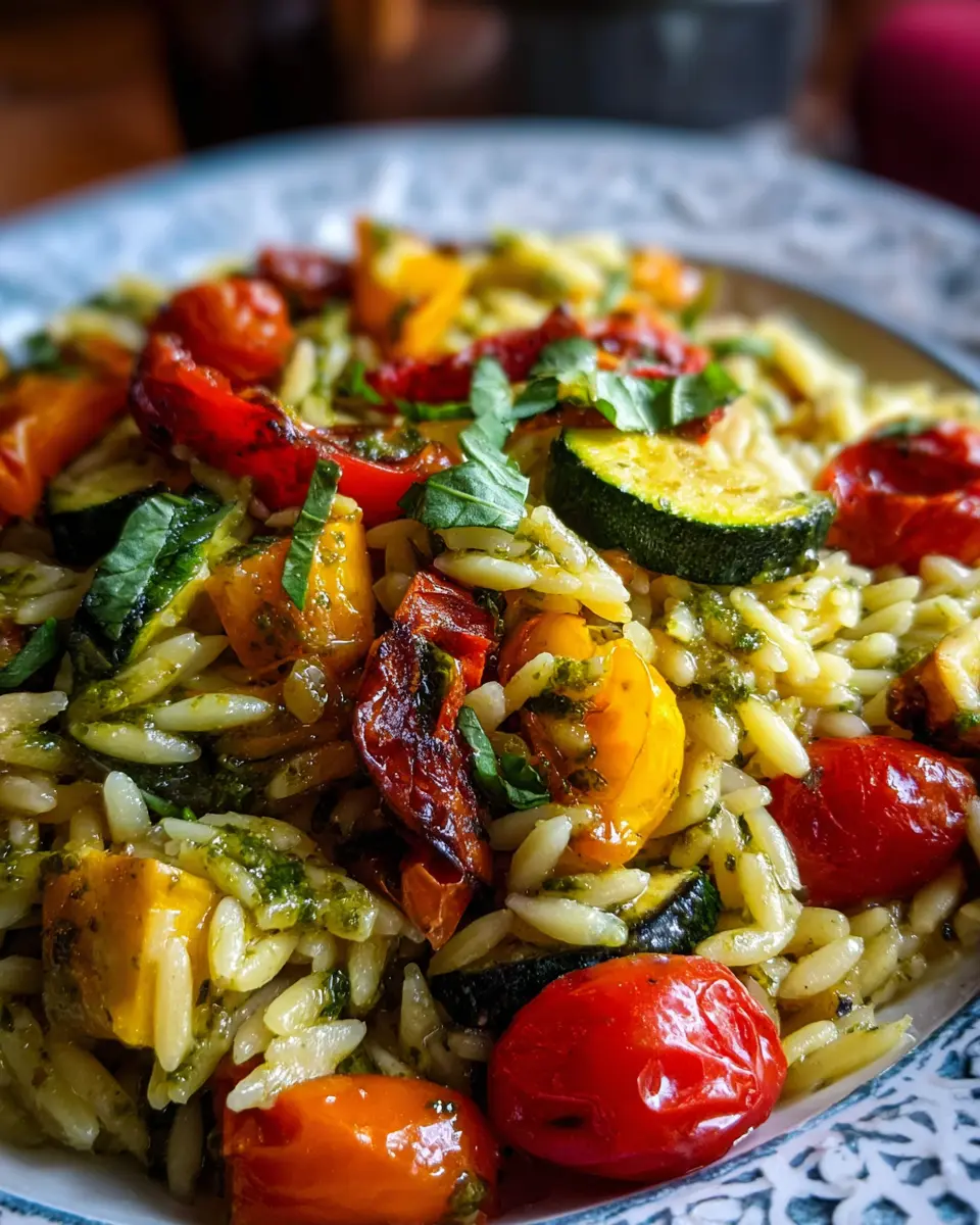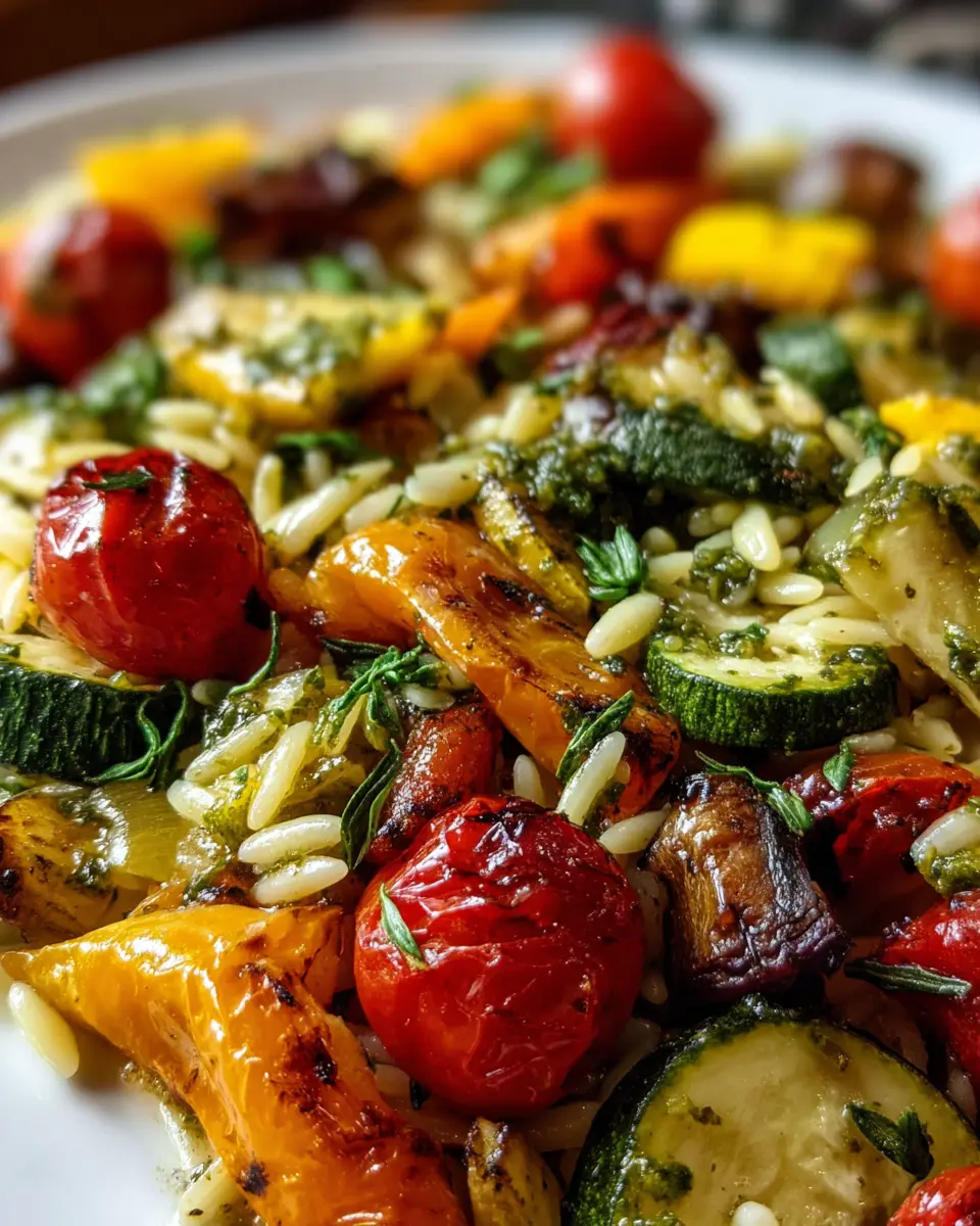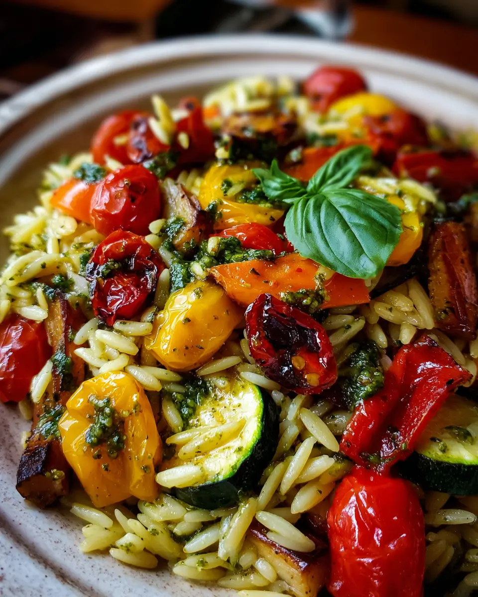 Orzo with Roasted Vegetables and Pesto