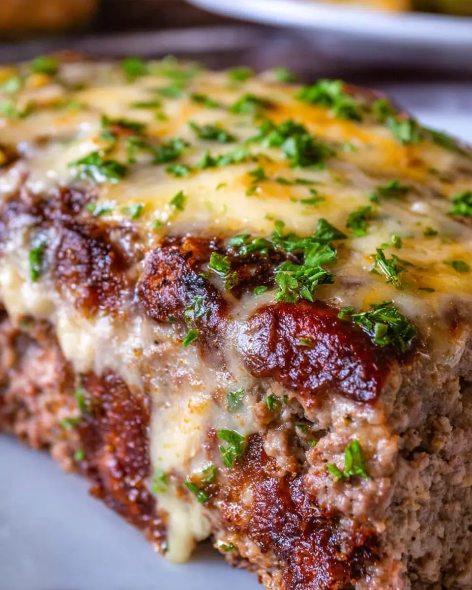 Preheat your oven to 375 degrees Fahrenheit. Bake your meatloaf for 40 minutes, then carefully remove it from the oven to layer on the remaining cheese. Pop it back in for another 15-20 minutes until cooked through. Let it rest for about 10 minutes before slicing. This will help the cheese settle and make serving easier.