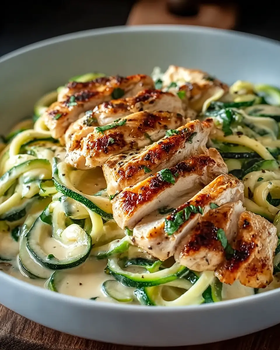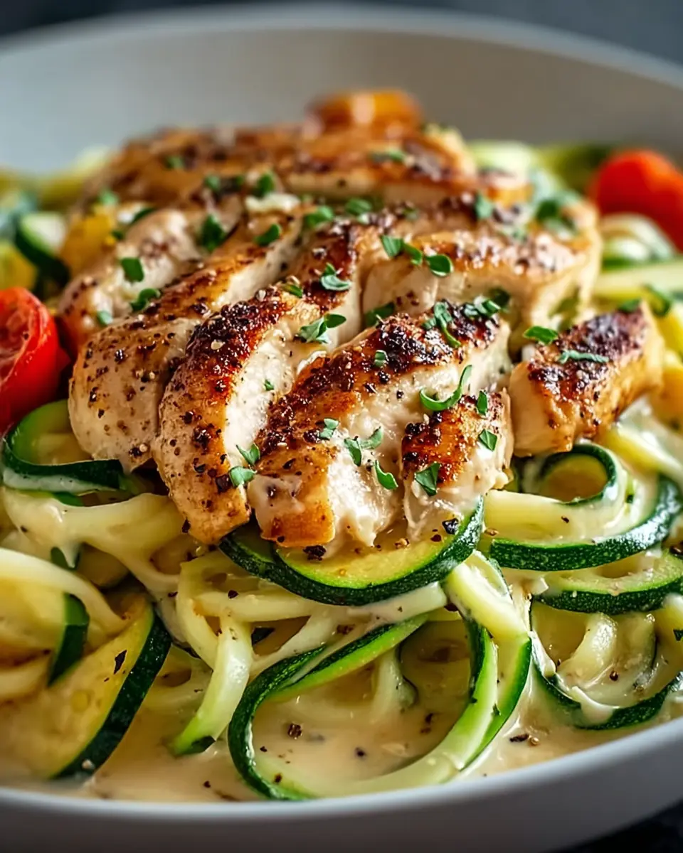 By swapping out regular pasta for zucchini, you’re lowering the carb content and increasing your vegetable intake, making this dish both light and satisfying. Whether you’re a health enthusiast or just someone looking to change up dinner, this recipe will delight your taste buds.