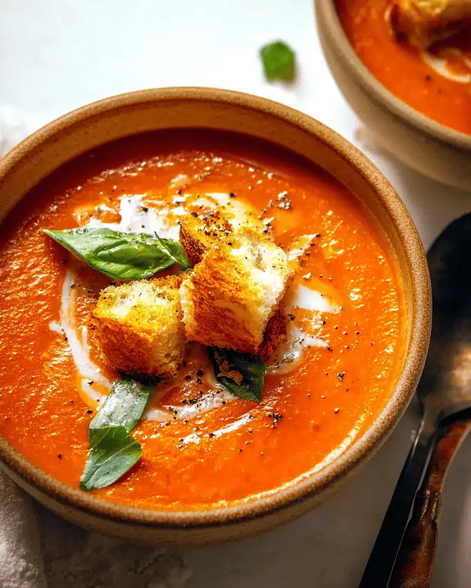 Toppings can enhance your roasted tomato soup experience. Here are some tasty suggestions: