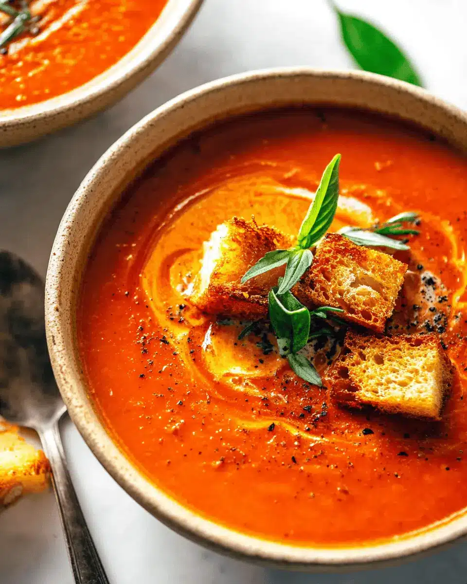 If you like a kick, this variation is for you! Just add a teaspoon of crushed red pepper flakes during the sautéing process, or increase the amount if you dare. The heat balances beautifully with the sweetness of the roasted tomatoes, creating a warm, cozy bowl. This soup pairs fantastically with a side of grilled cheese or simple crusty bread to help cool your palate. Enjoy customizing it to your spice level!