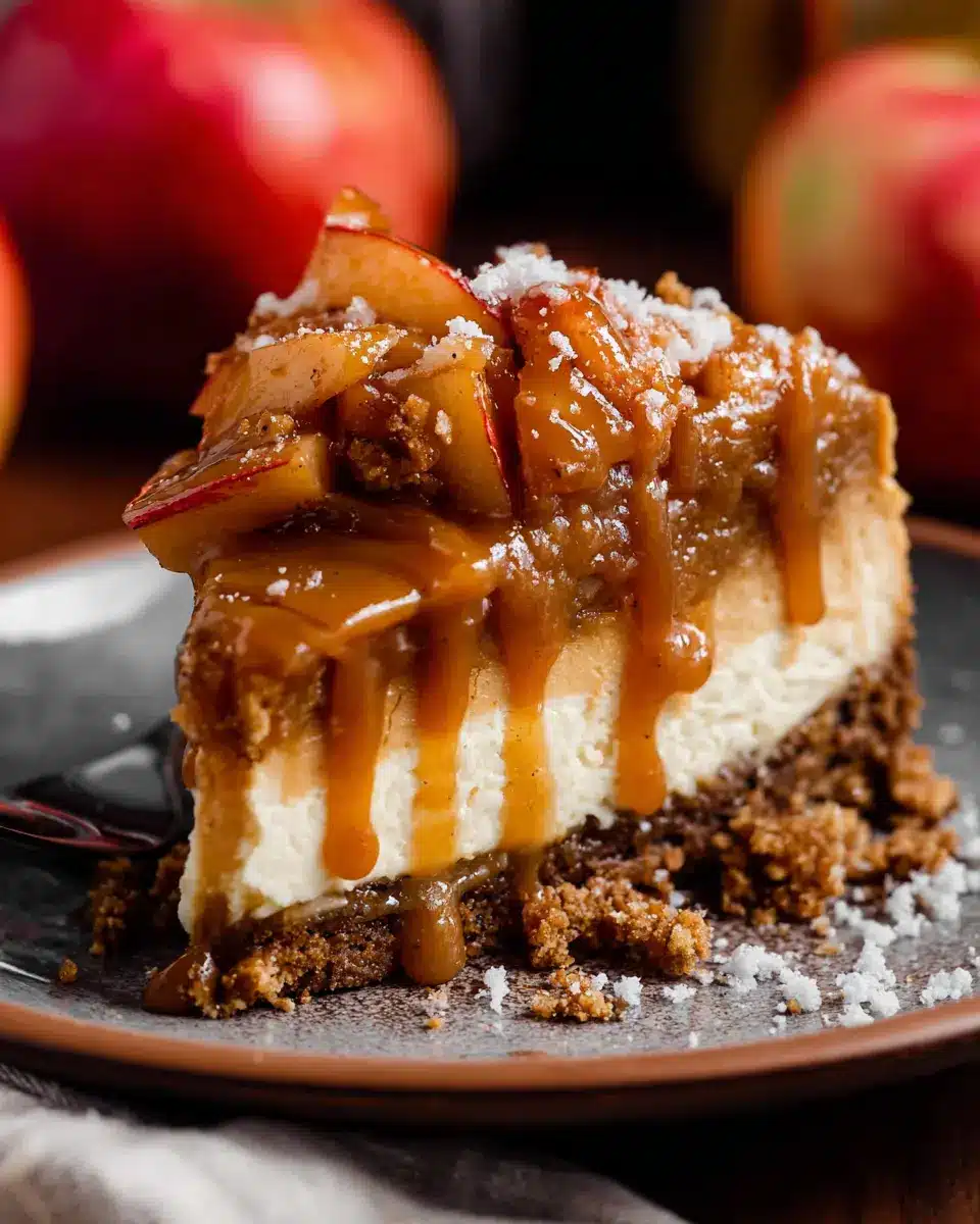 Presentation matters when serving this showstopper! Slice the cheesecake neatly and arrange each piece on a decorative plate. Drizzle with additional salted caramel for that eye-catching finish and add a sprinkle of crushed graham crackers for texture. Consider garnishing each slice with thinly sliced apples or a sprig of mint to create a beautiful contrast.